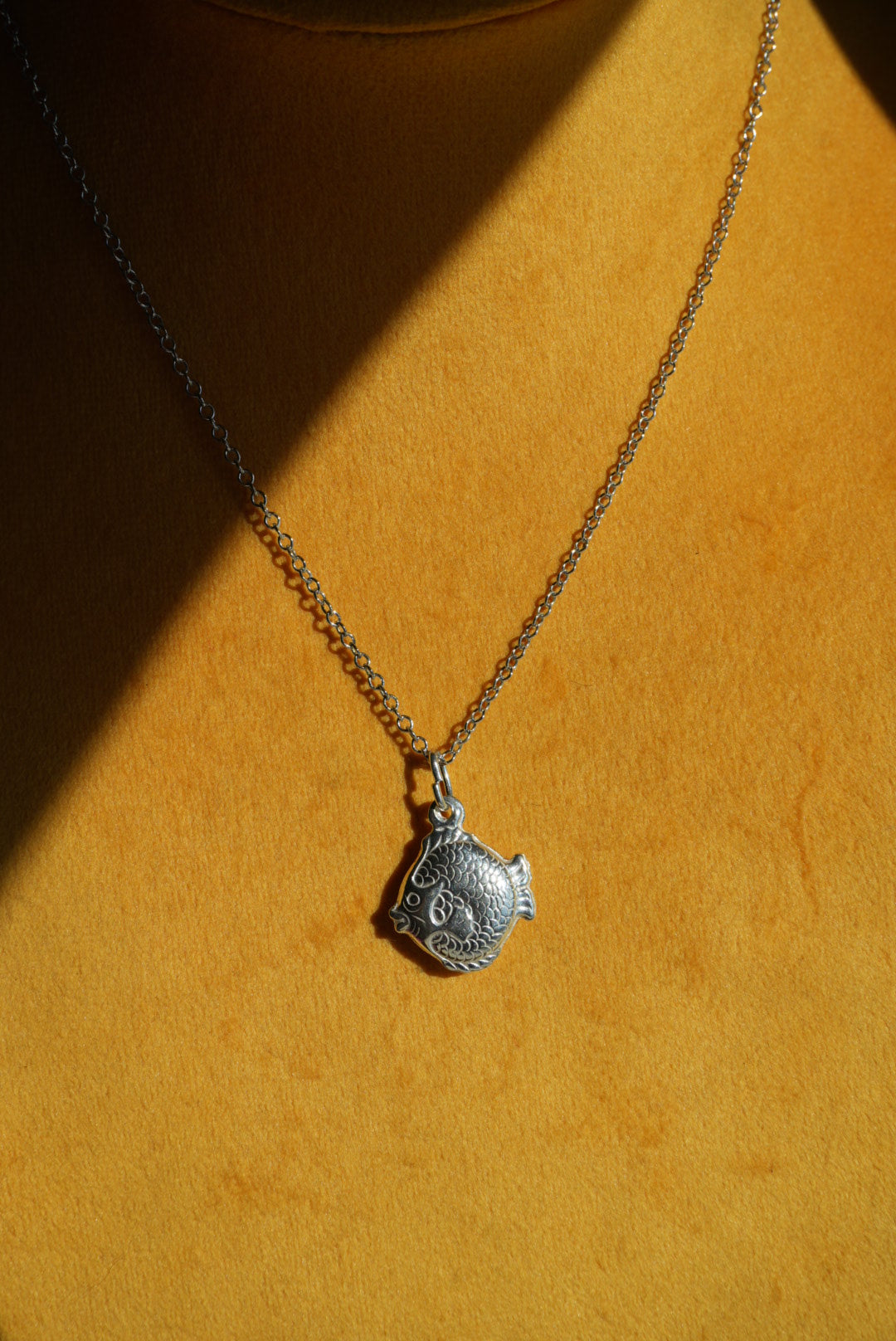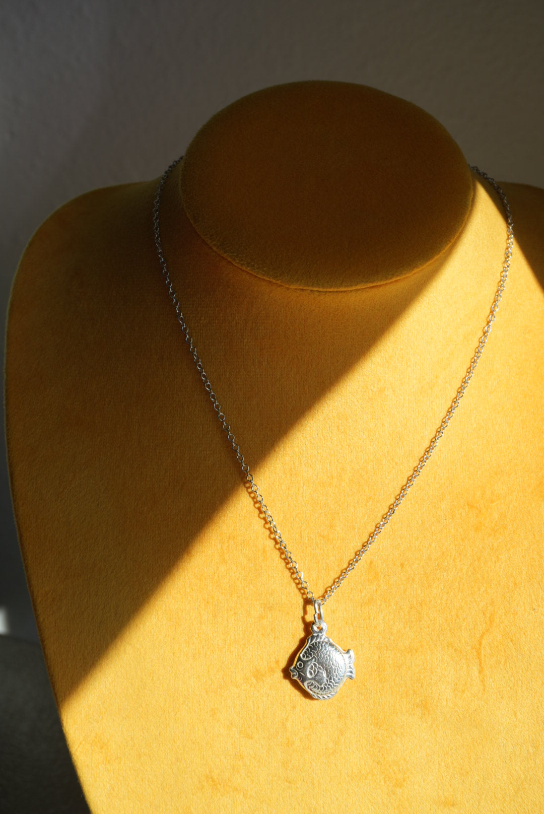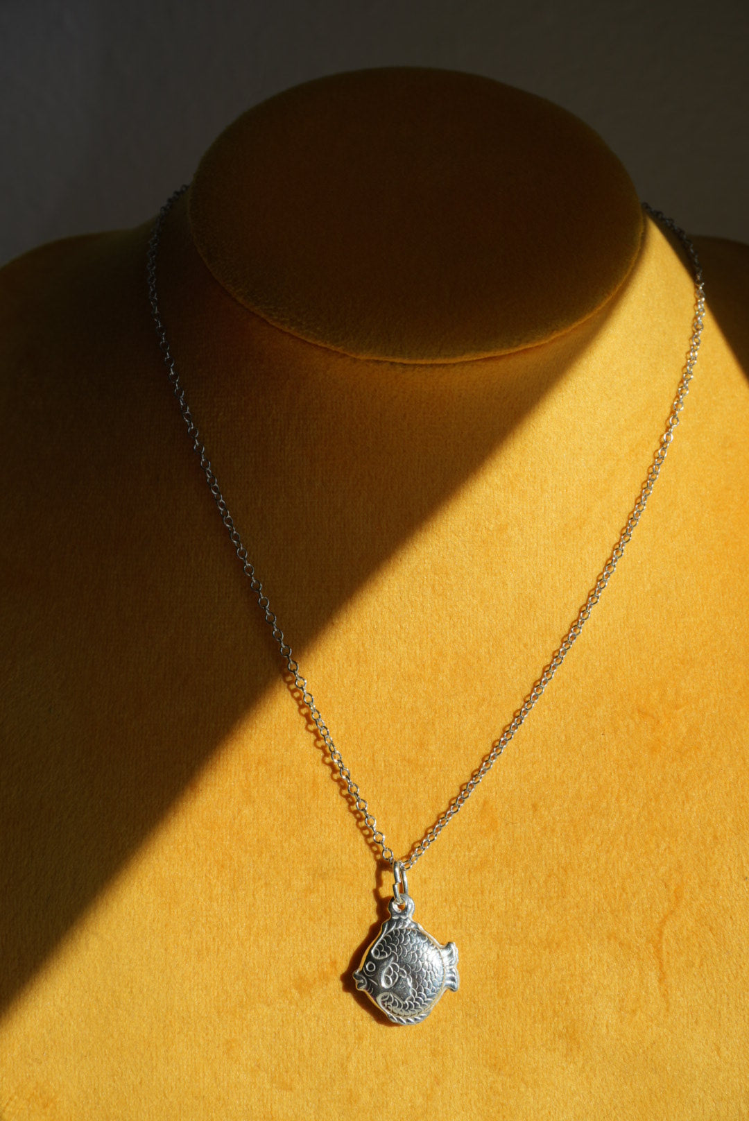 15” length sterling silver chain with little fish charm