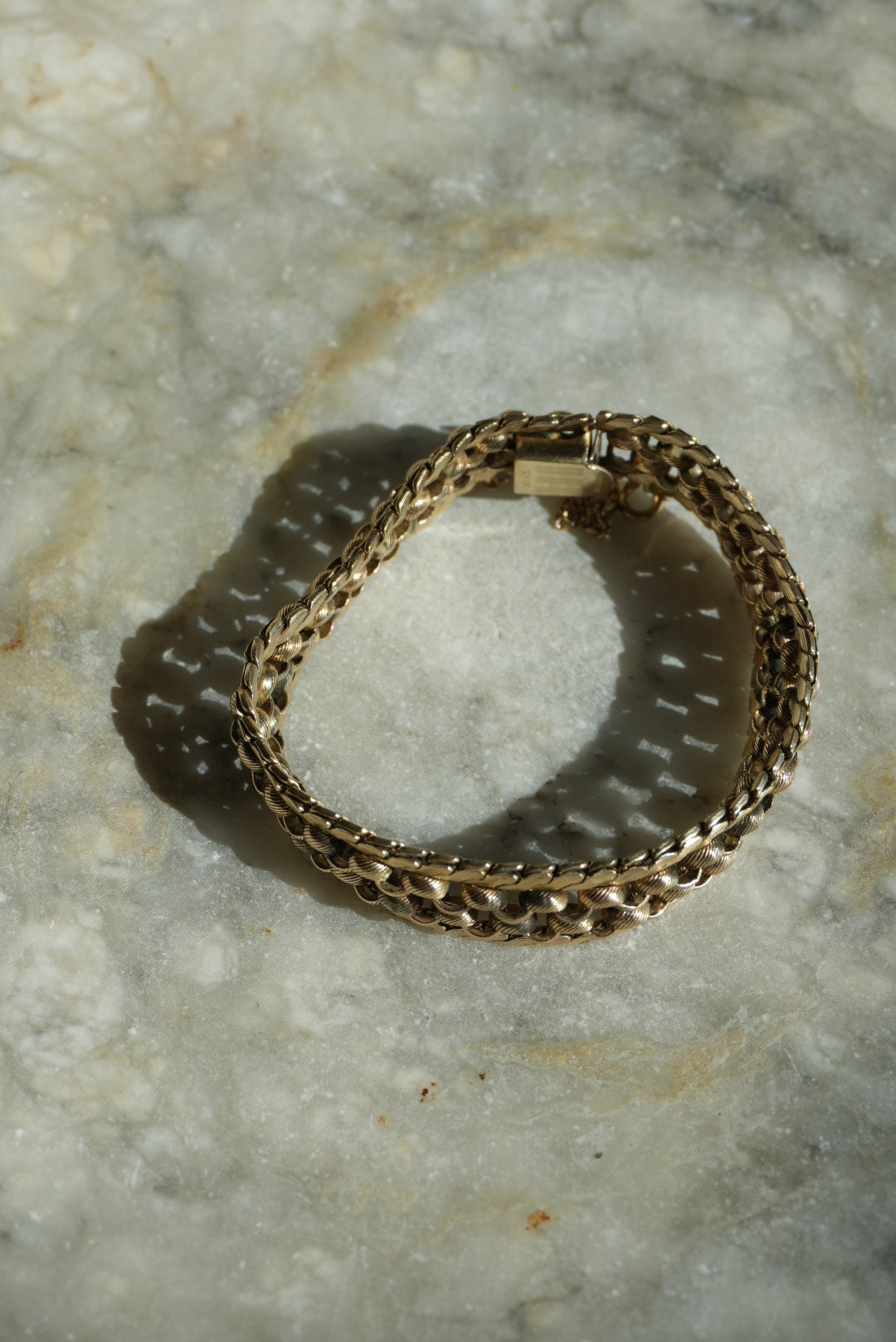 Gold fill mesh chain style bracelet with safety chain from Rhythm 7.25 inch length 0.6 inch length