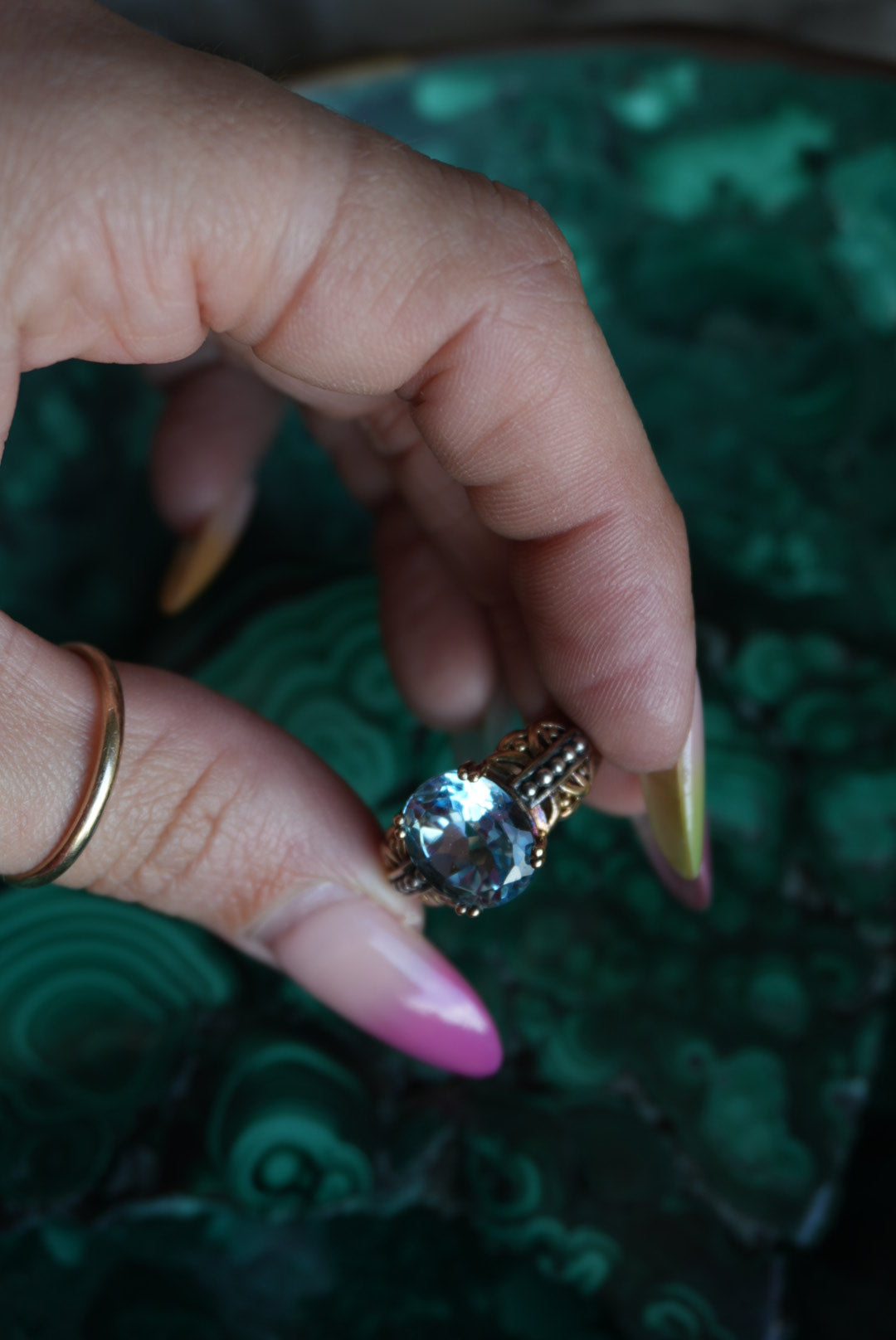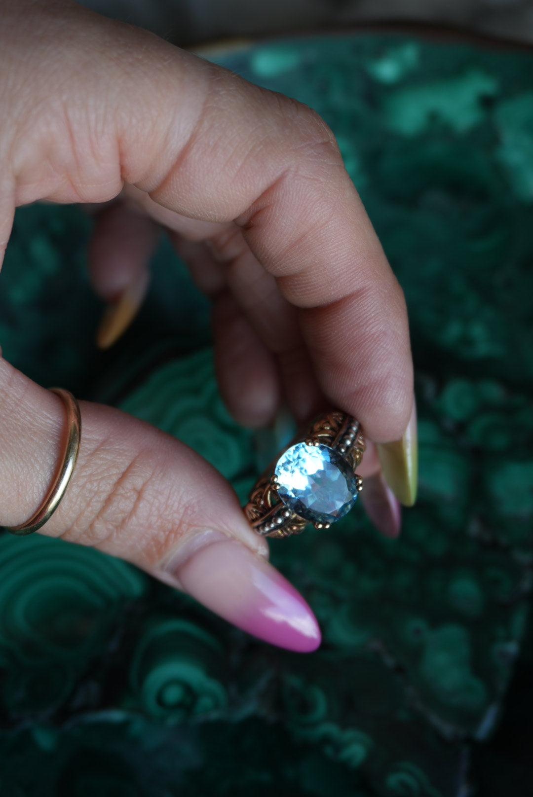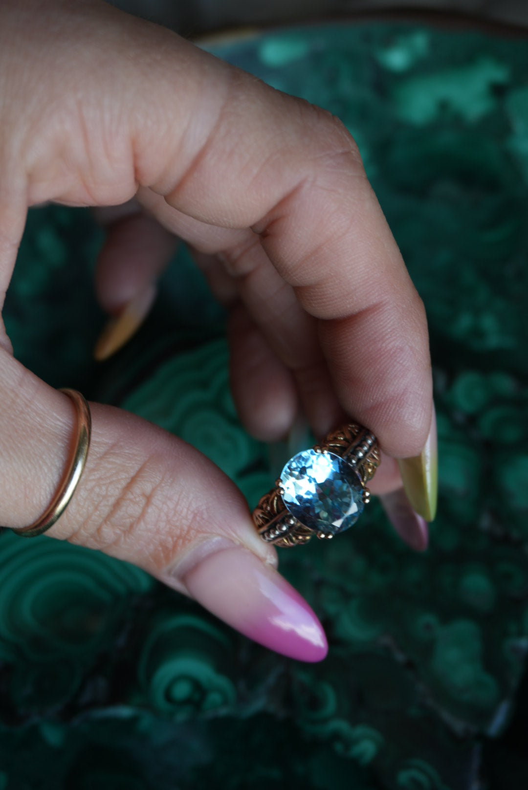 DescriptionSZ 6 vermeil ring with large lab aquamarine