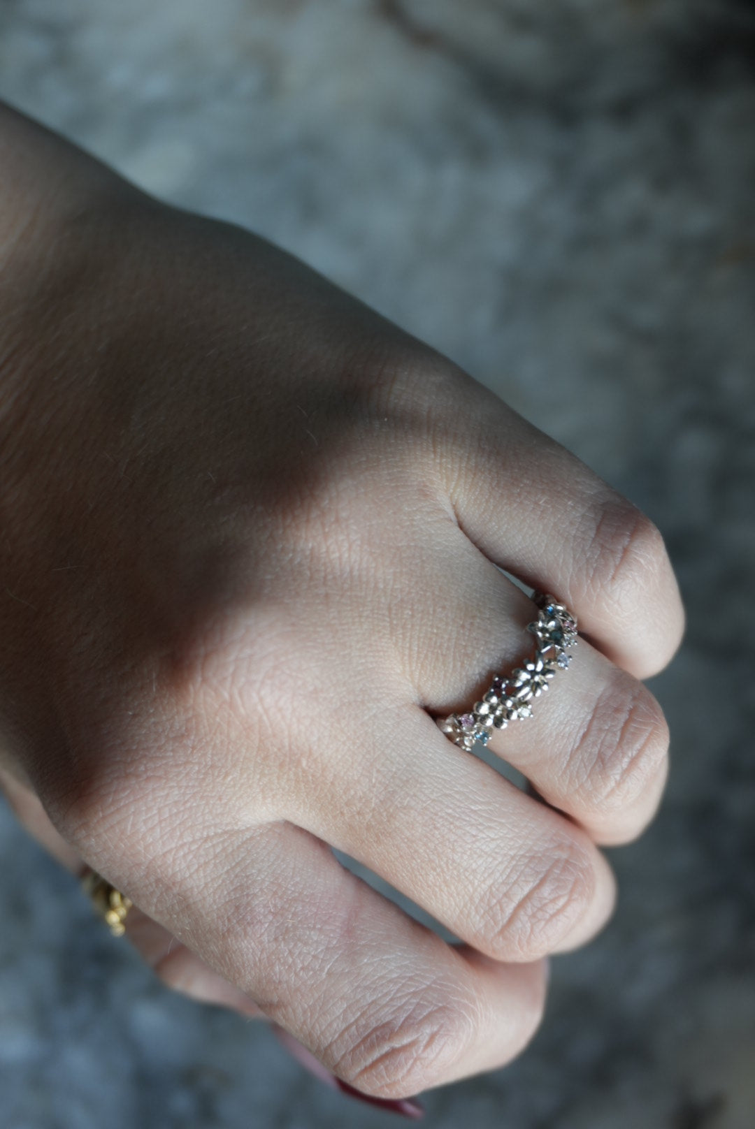 Sterling silver ring tiny gemstone accents