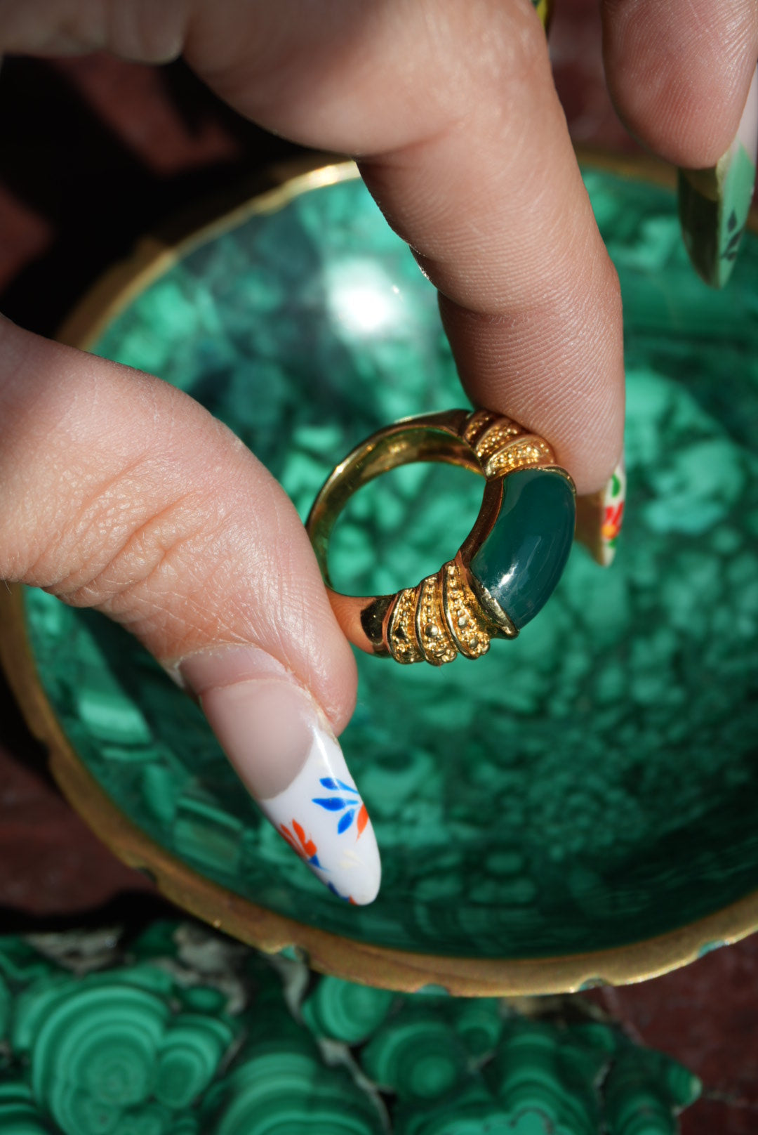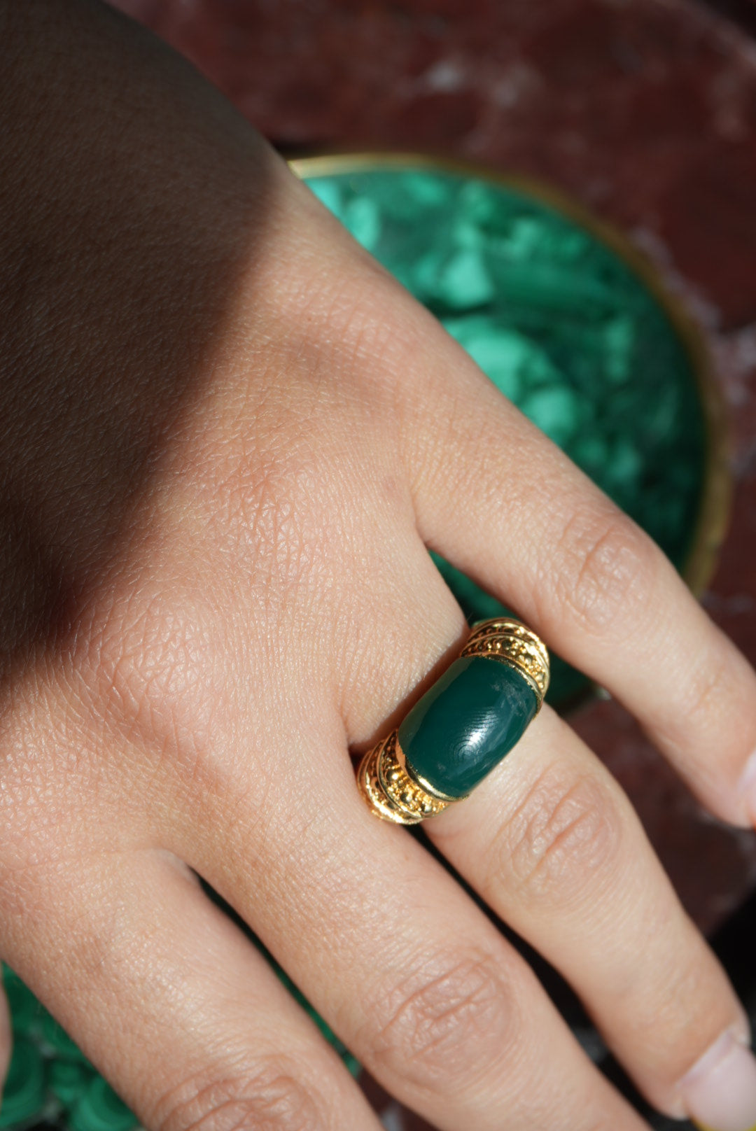 Vermeil ring with jade center piece