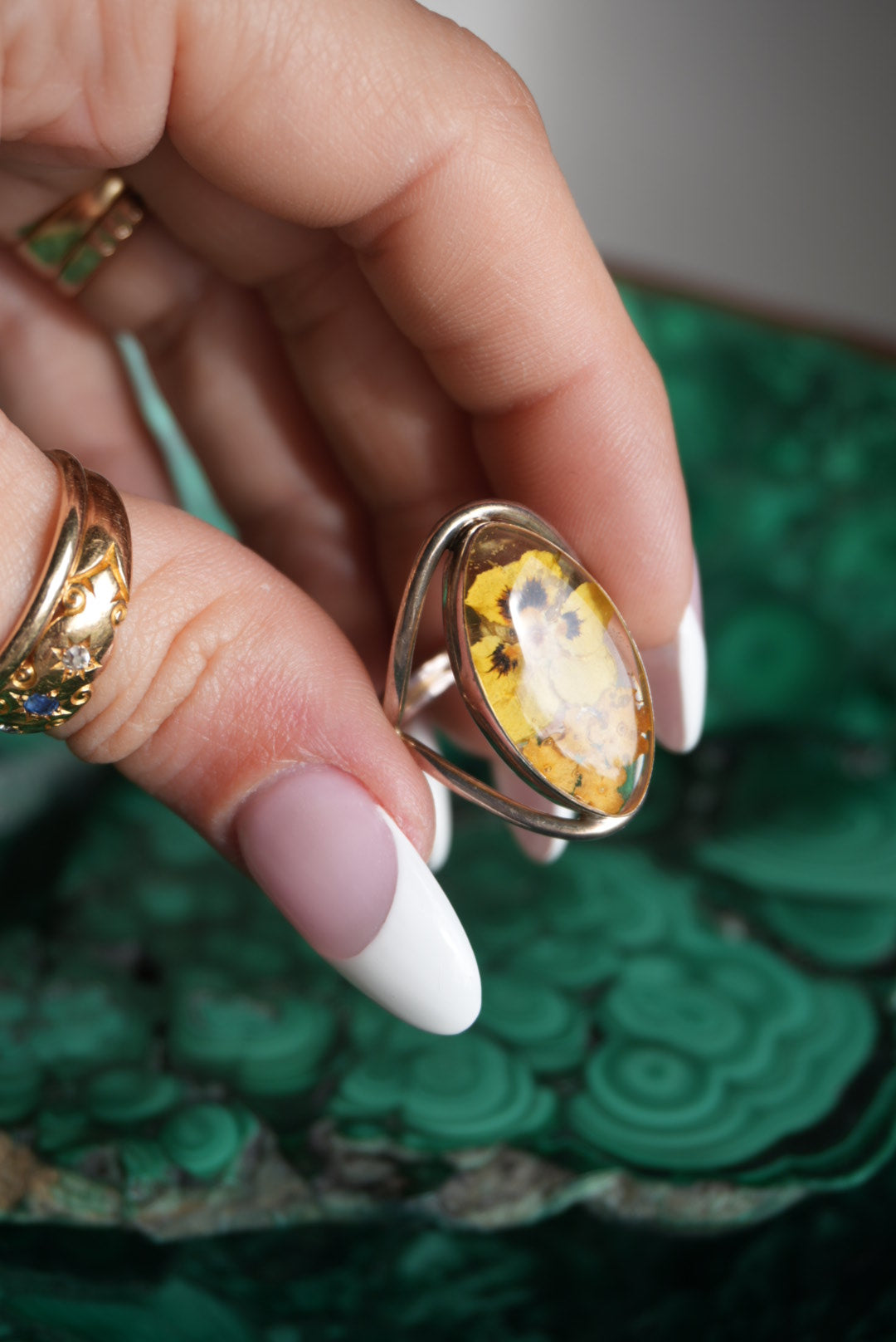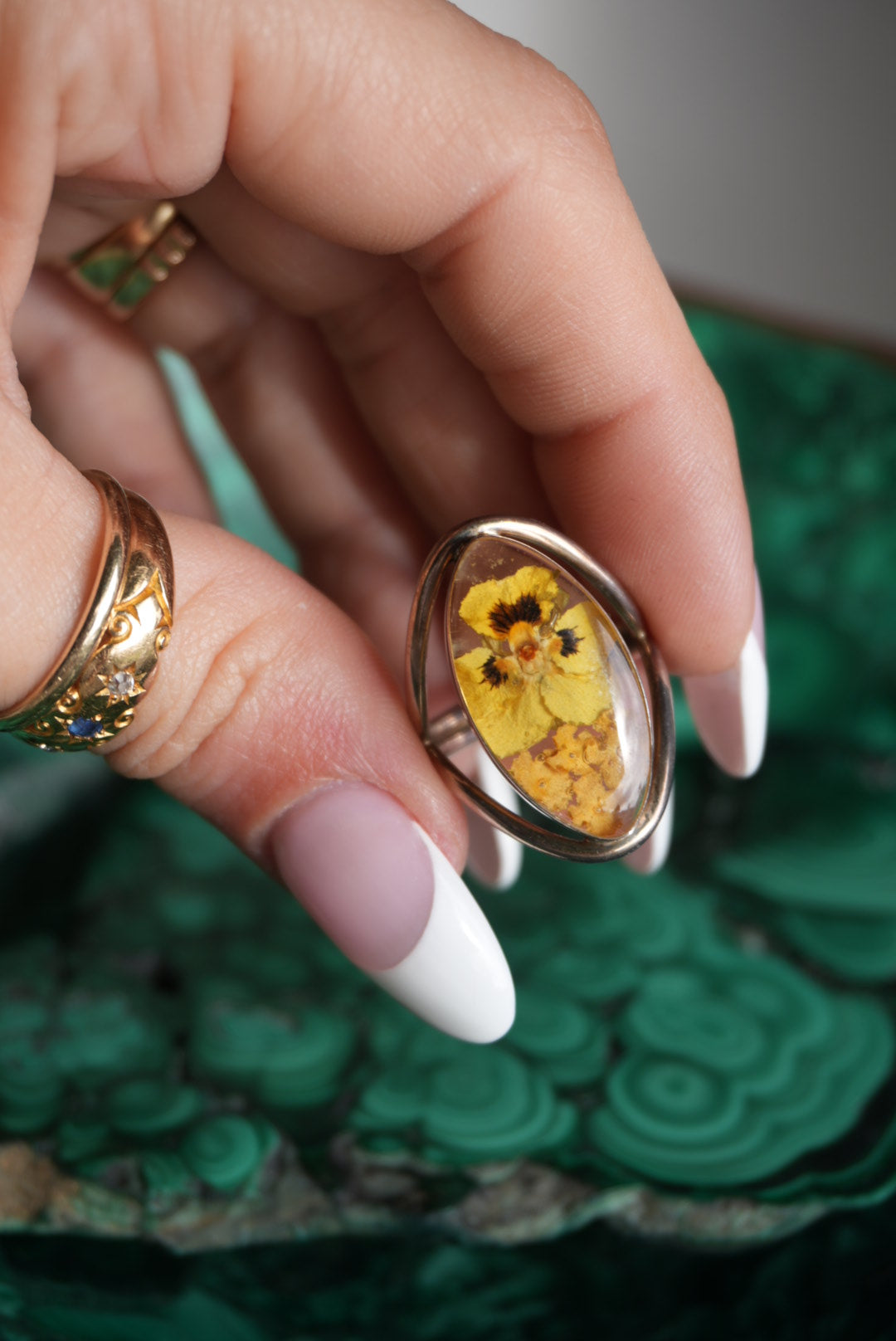 Sterling silver ring with a poppy pressed flower