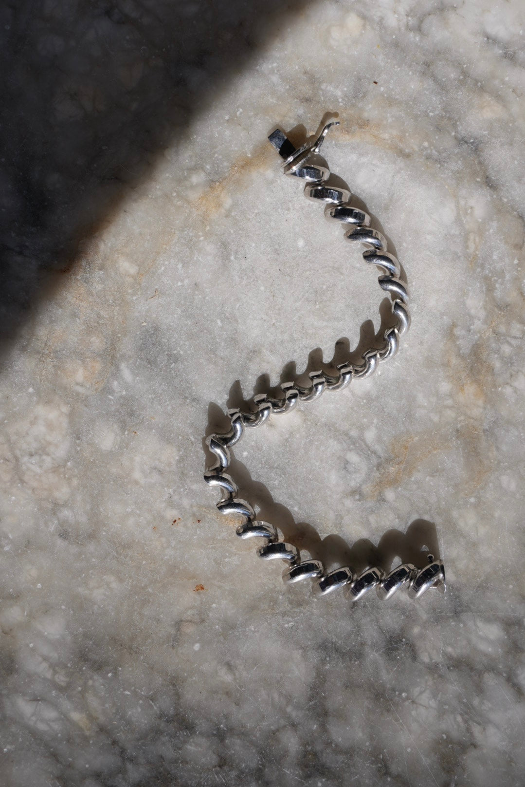 7.25 inch length sterling San Marco with faceted top and smooth sides! Unique version of the croissant bracelet