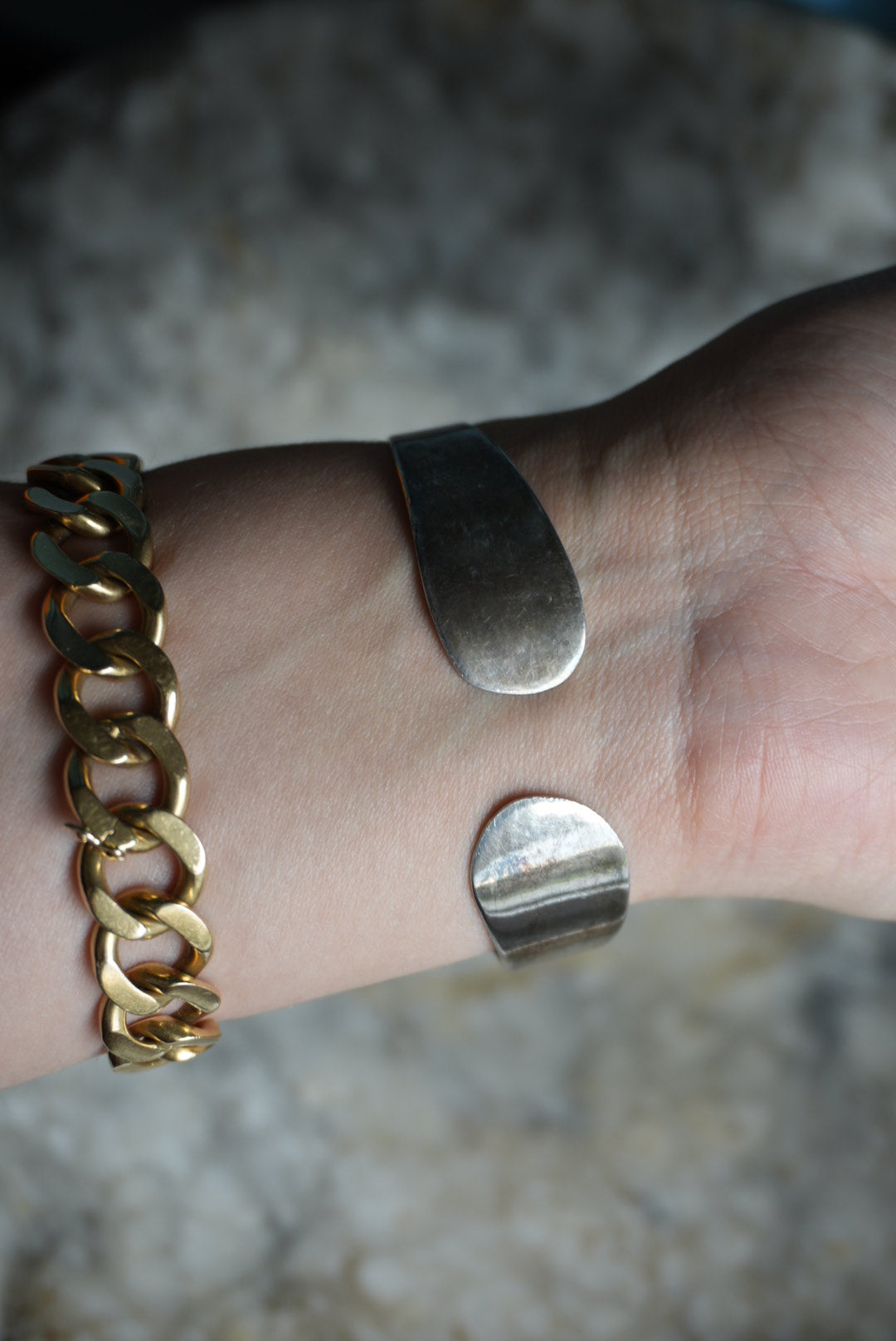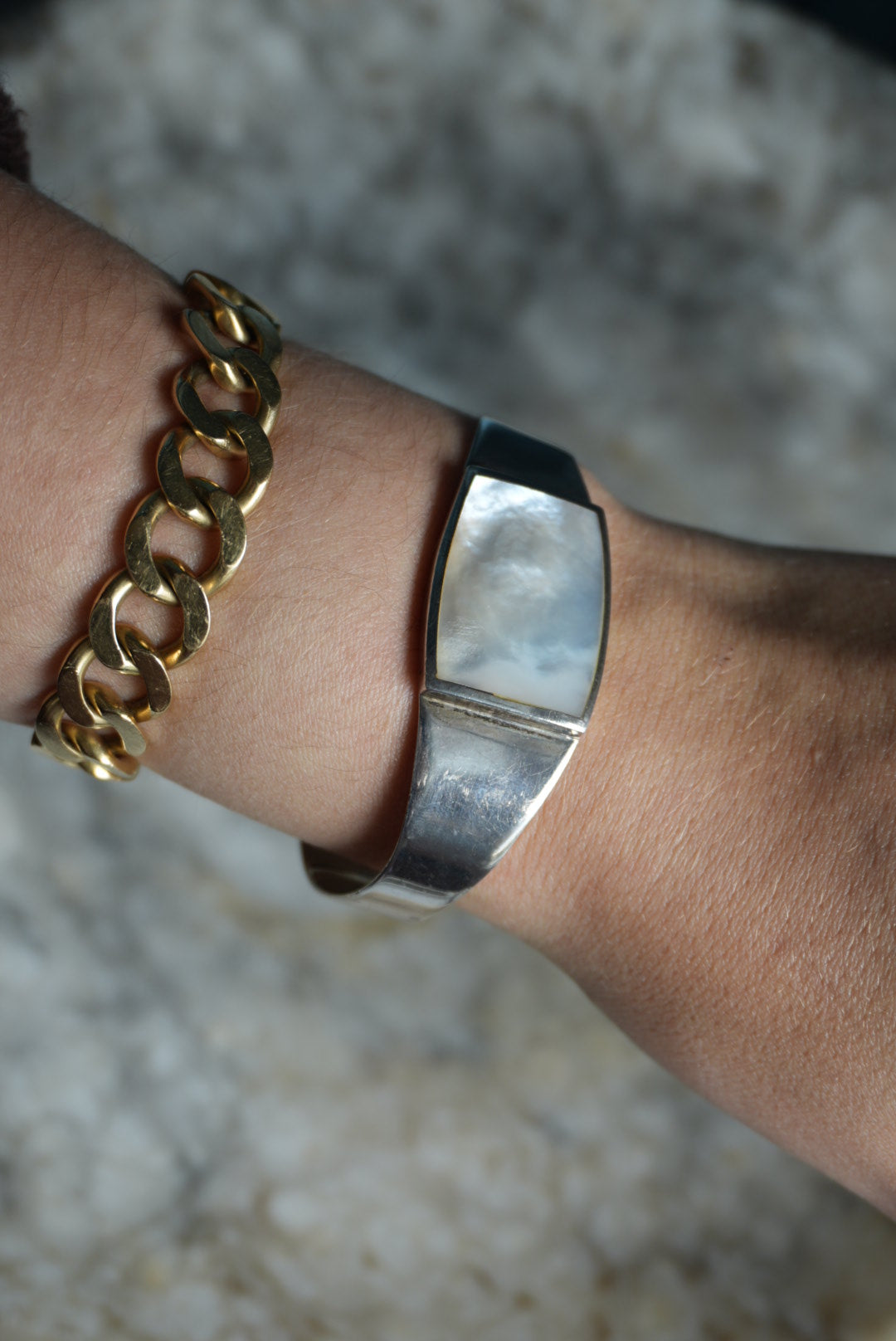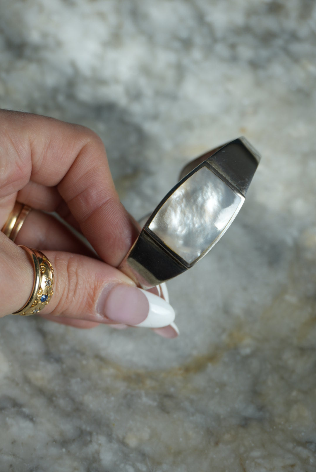 2.5 inch sterling silver mother of pearl bangle