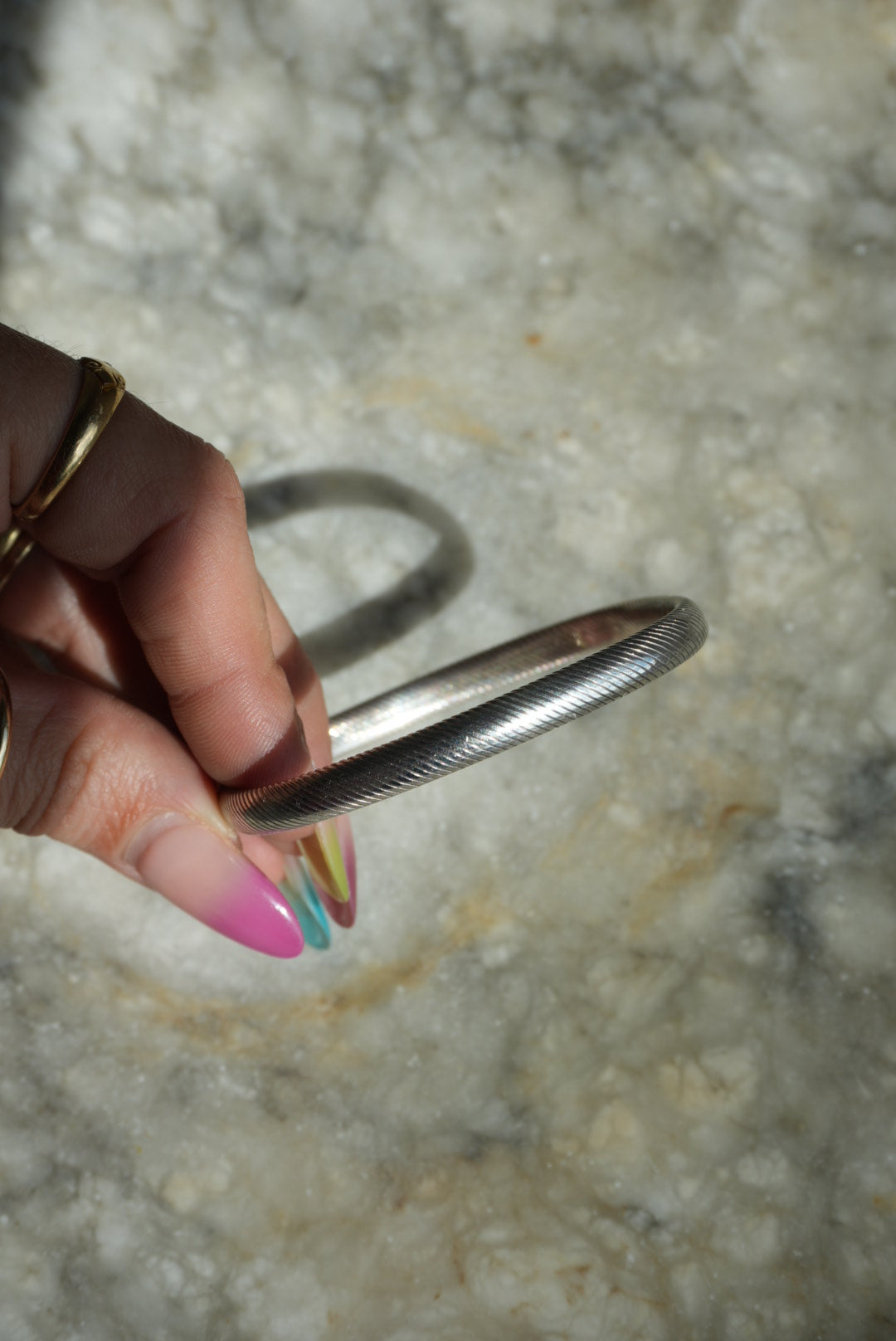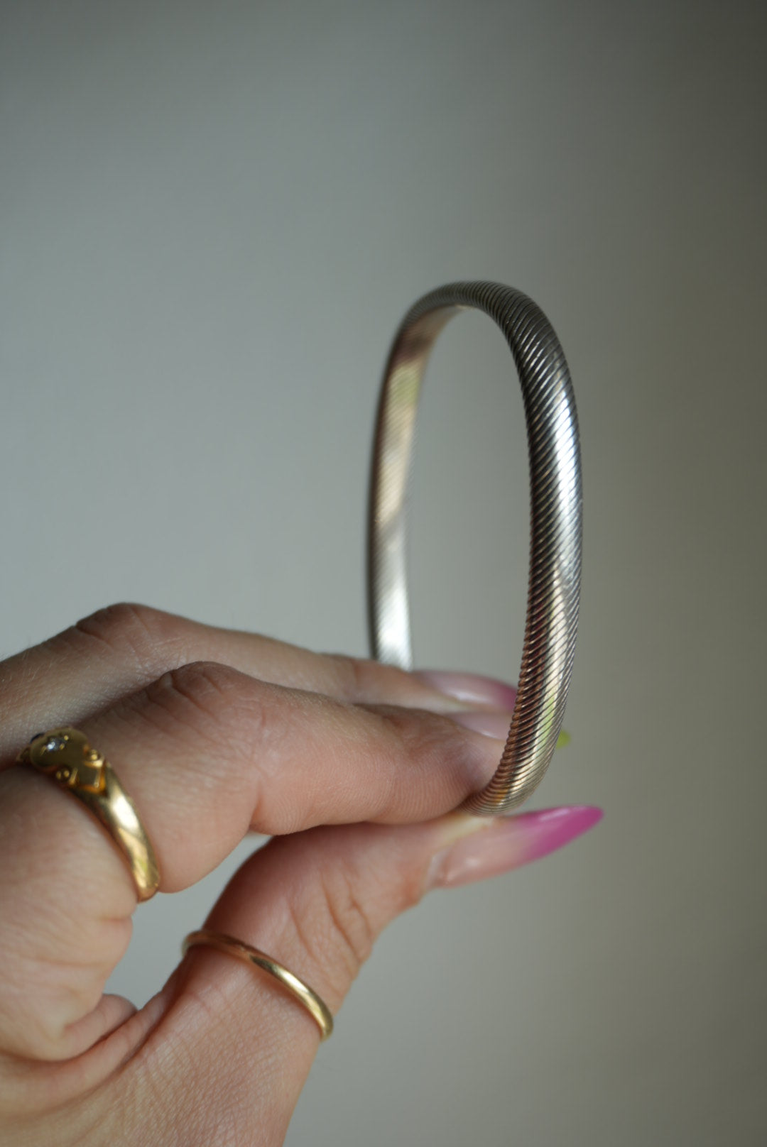 Sterling silver rectangle shaped bangle bracelet opens for easy wear