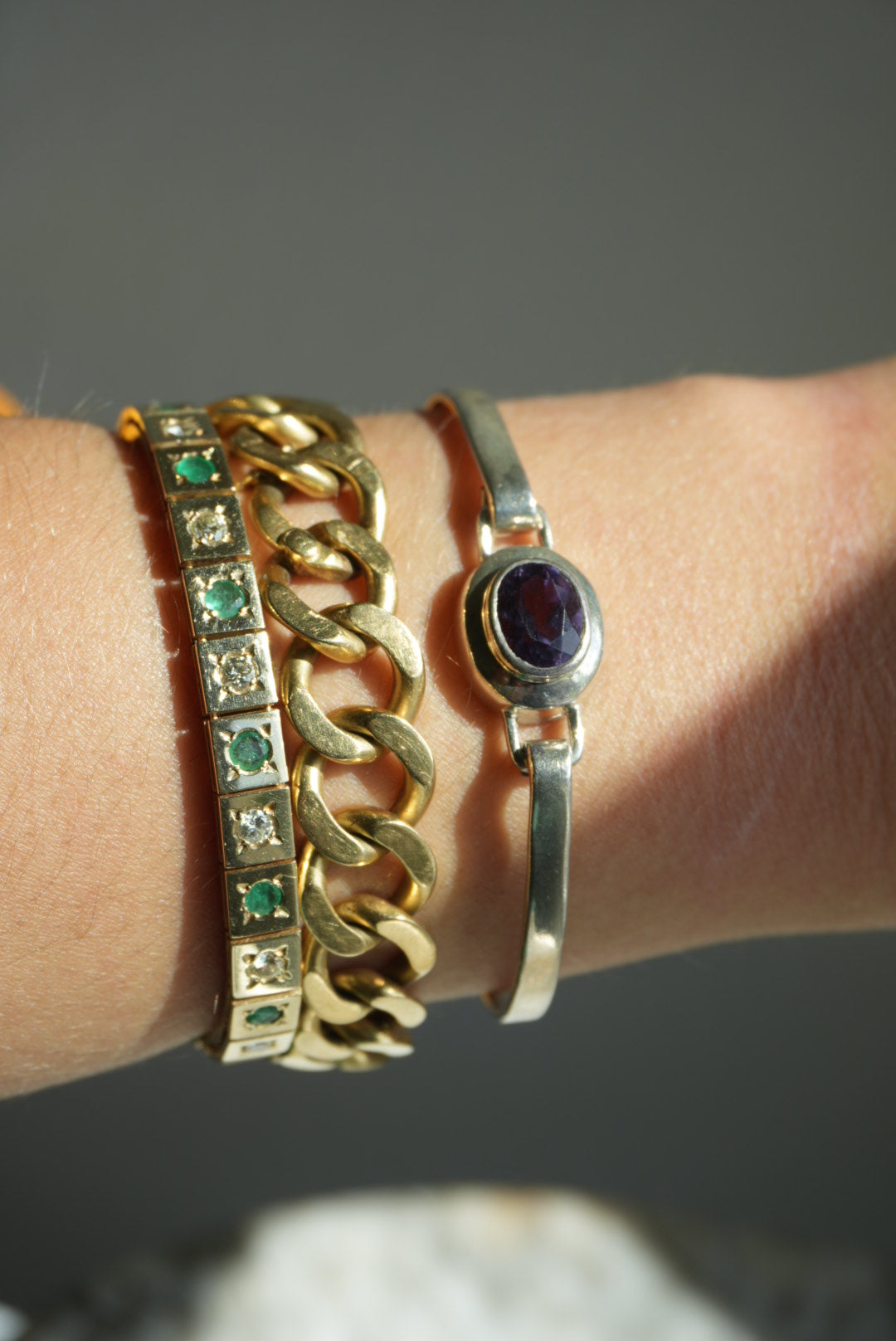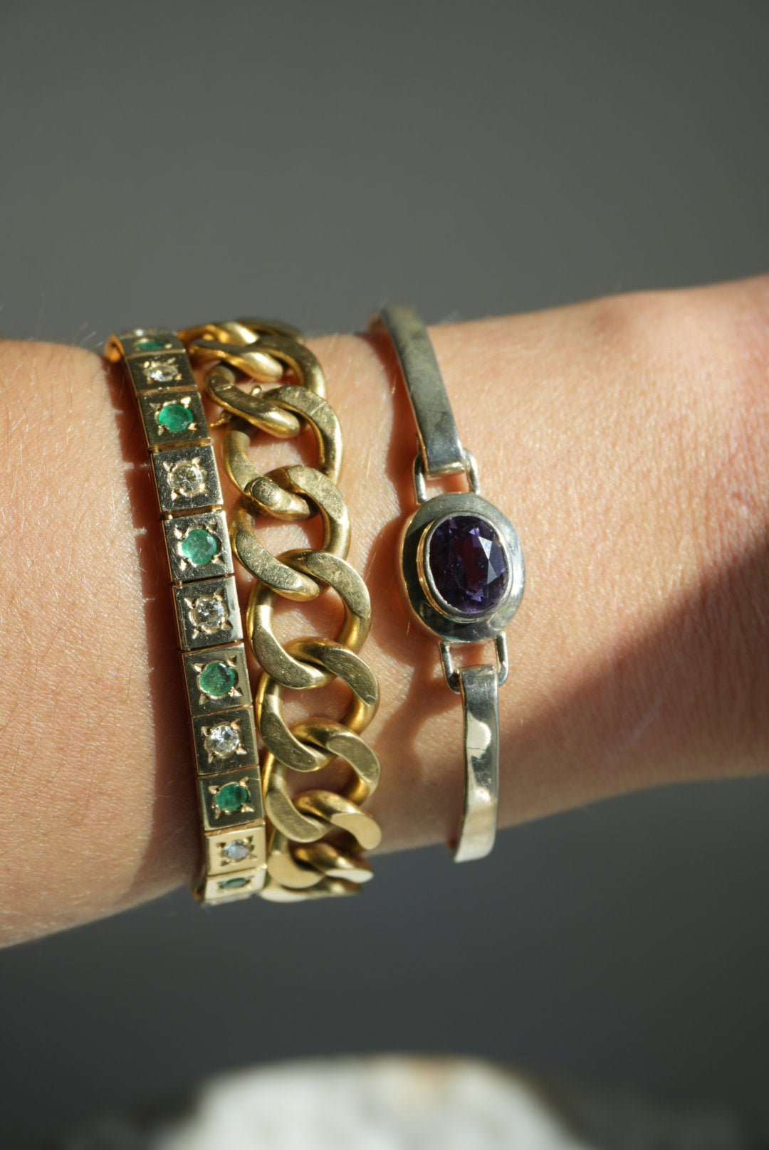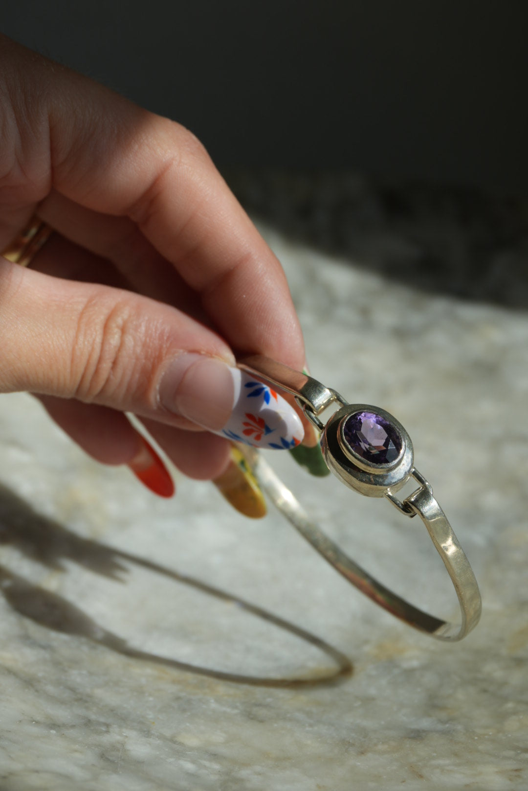 Sterling silver amethyst bangle bracelet 2.5 Inches wide