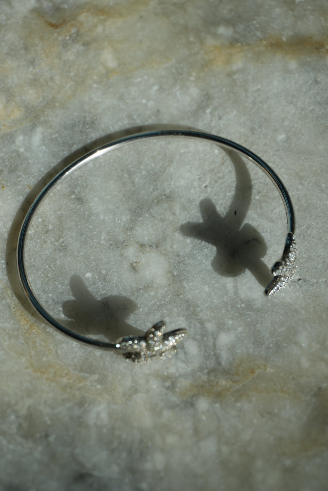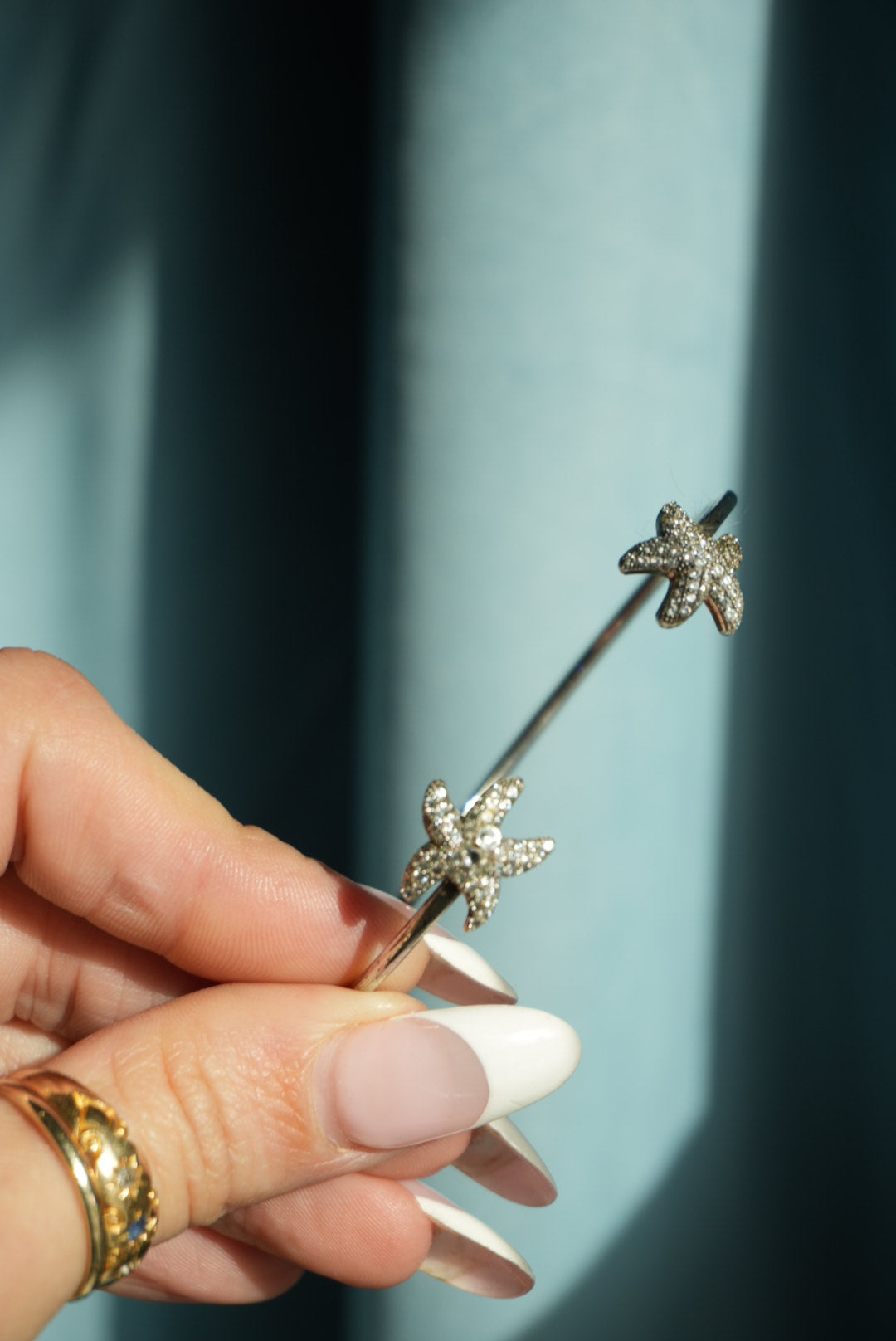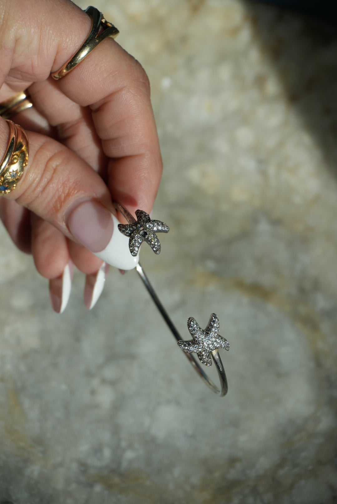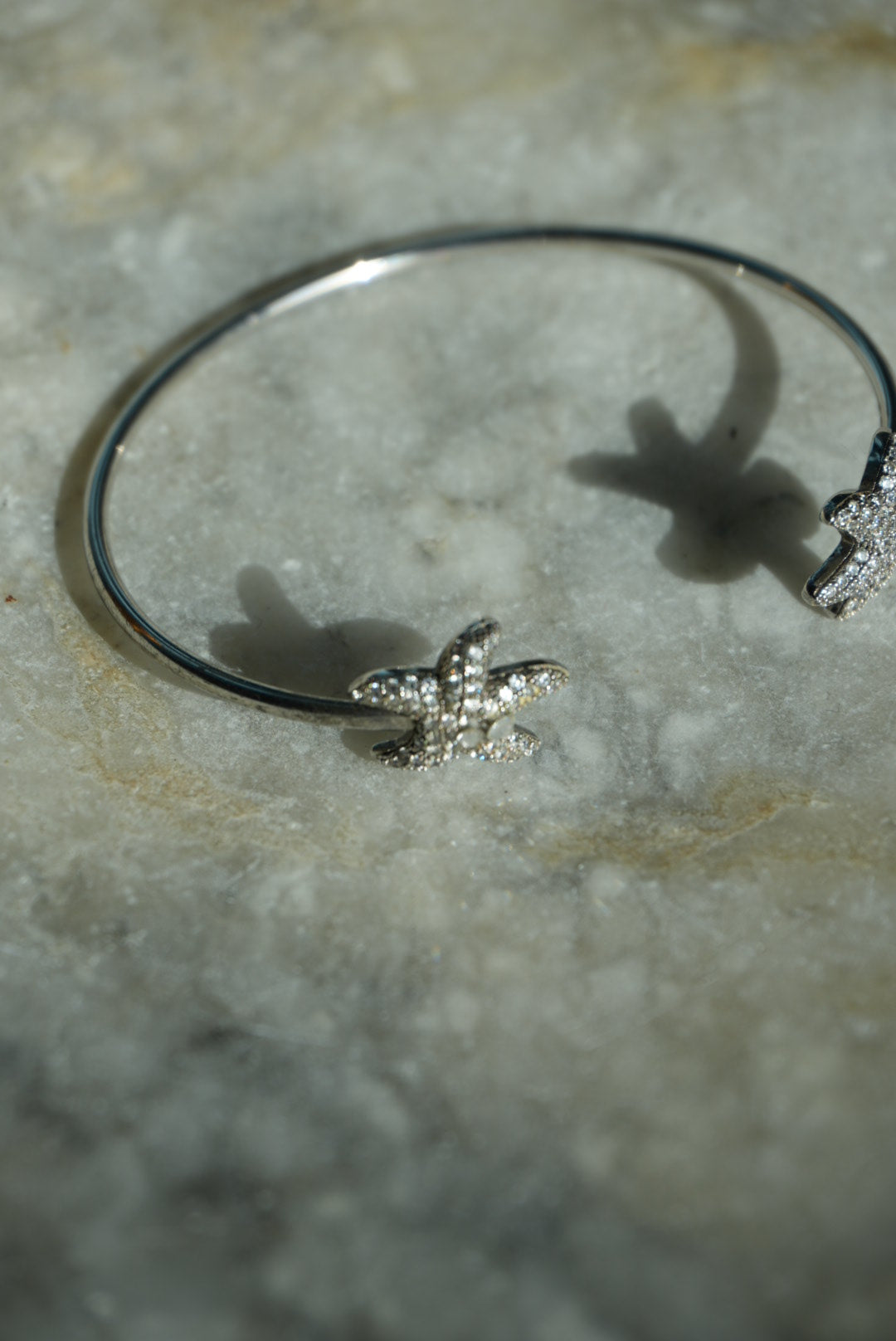Sterling silver open bangle with glass tone pave starfish 2.25 inch inner diameter