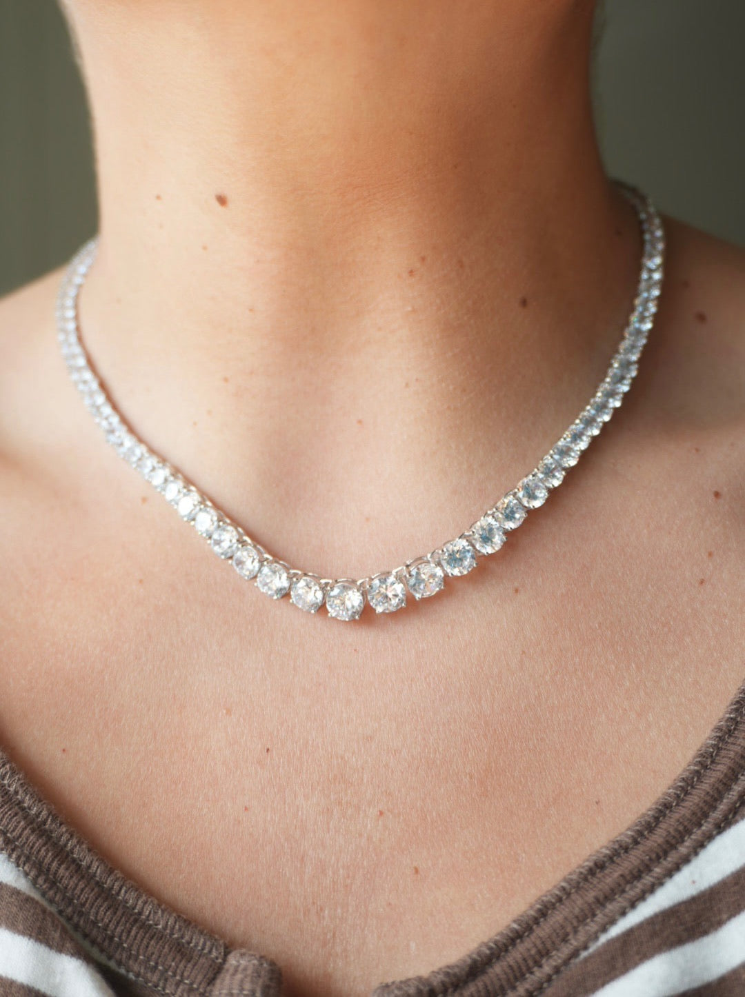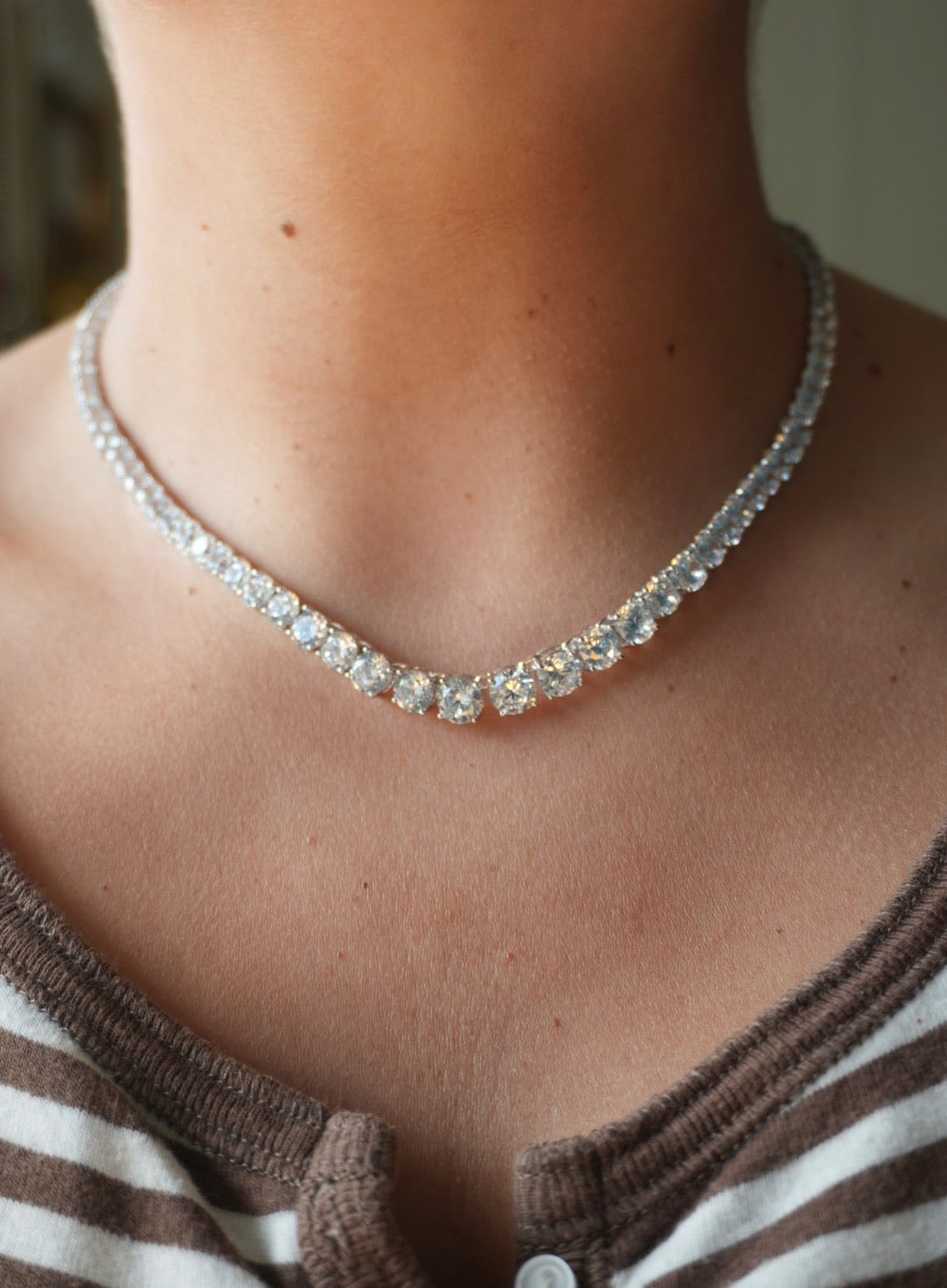 Sterling silver graduated tennis necklace all sterling silver and glass stones 18” length