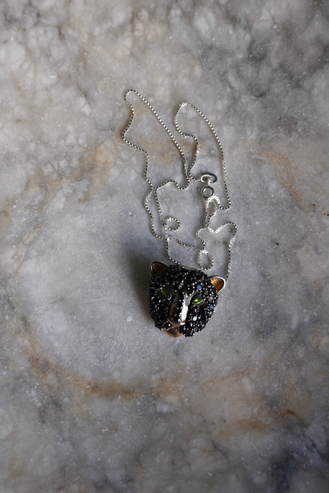 17” length panther pendant all sterling silver with gemstones and vermeil detailing can also be worn as a broach