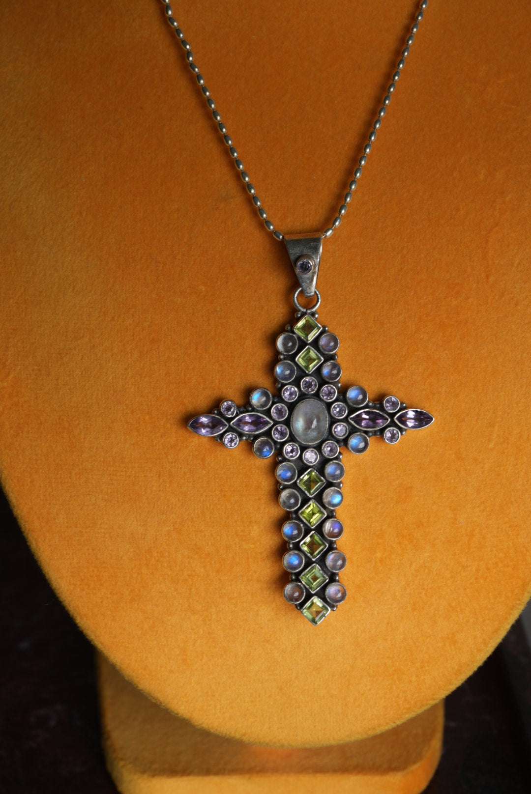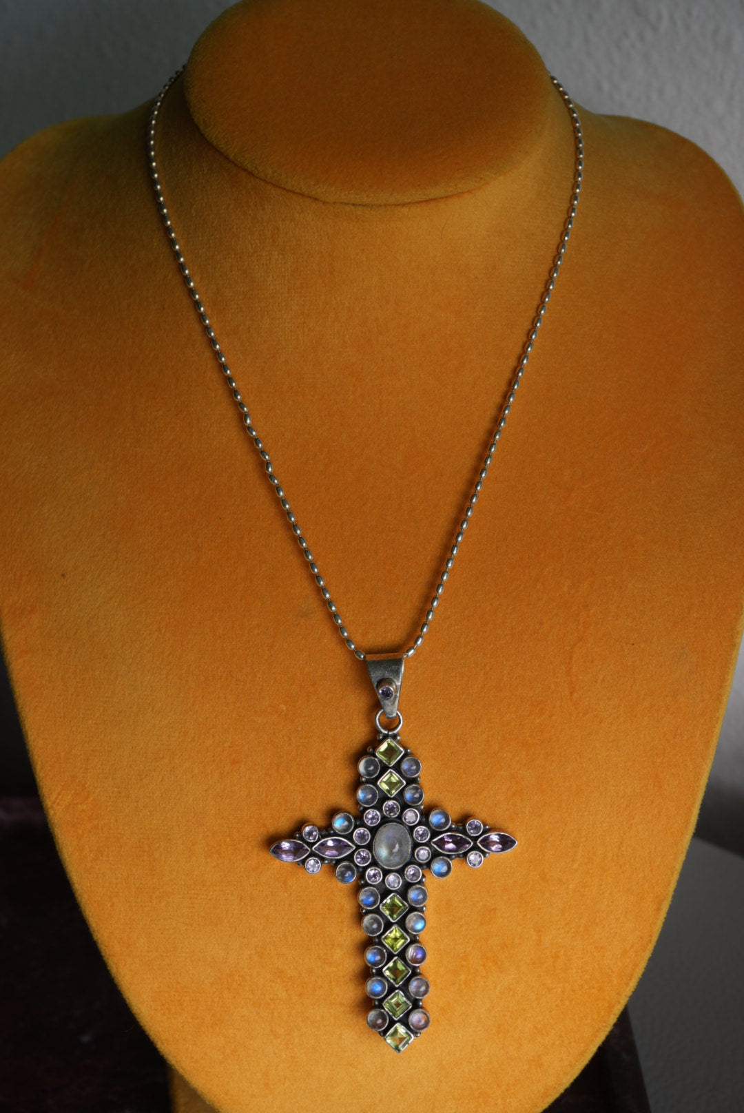 Moonstone, amethyst & peridot Nikki butler cross 16 inches long