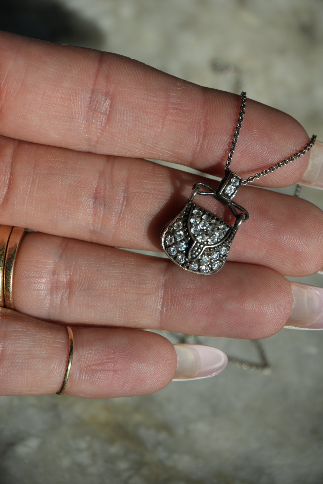 16-20 inch length sterling chain with little sterling purse charm