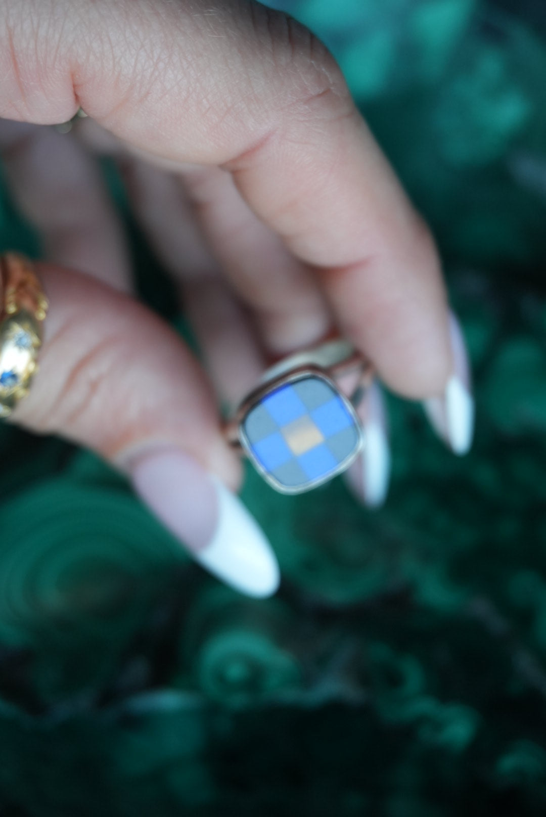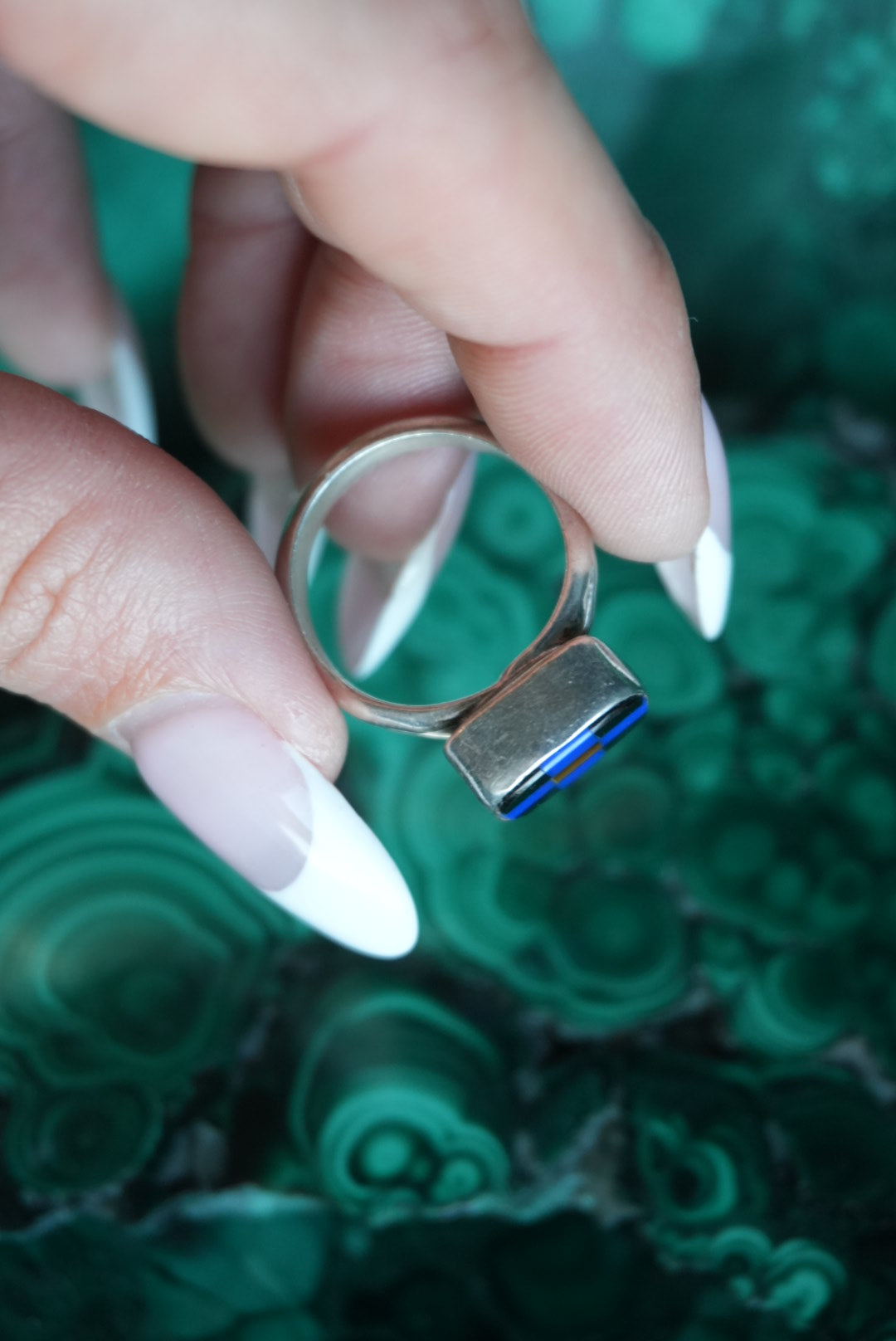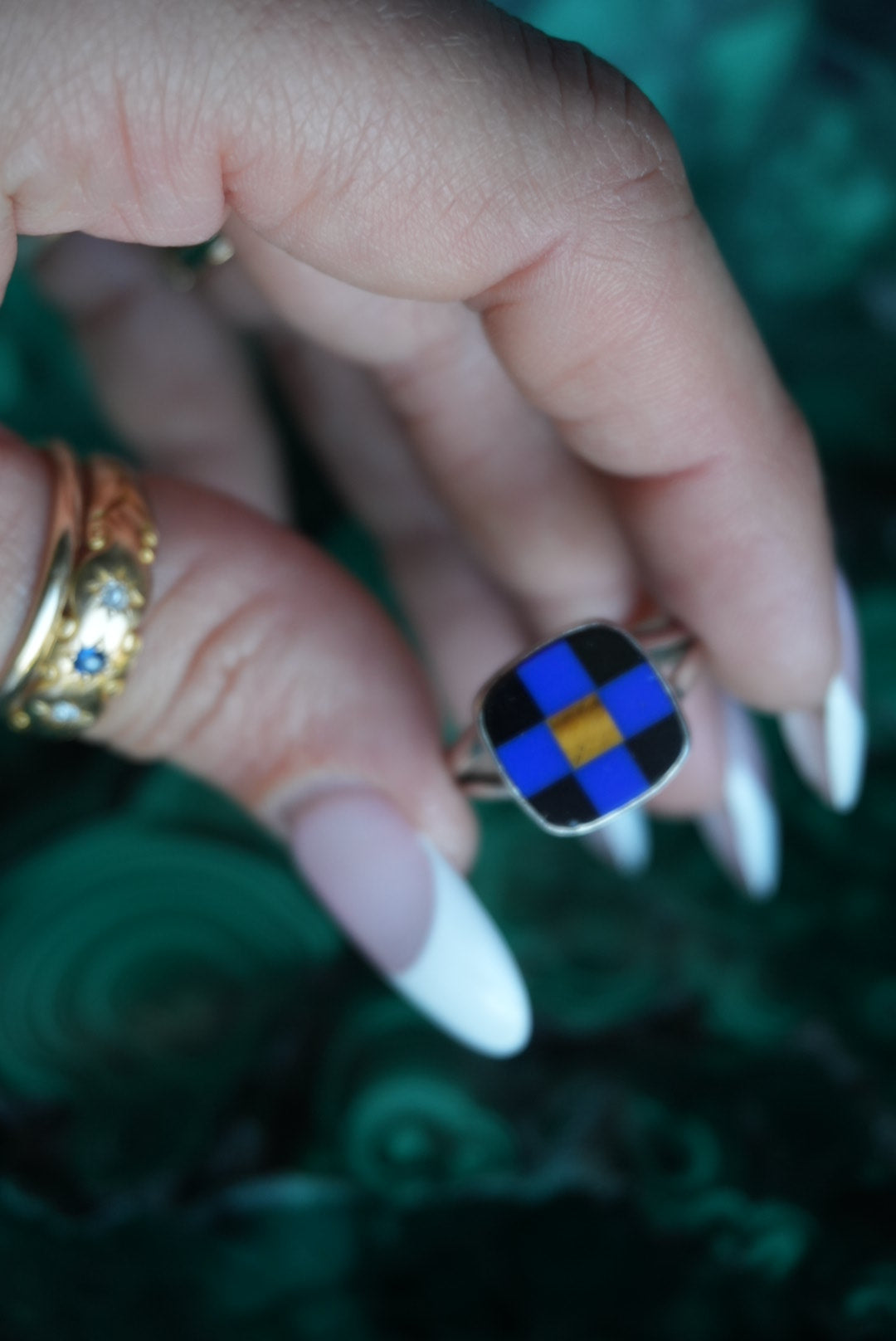 Sterling silver lapis, onyx, & tigers eye SZ 8