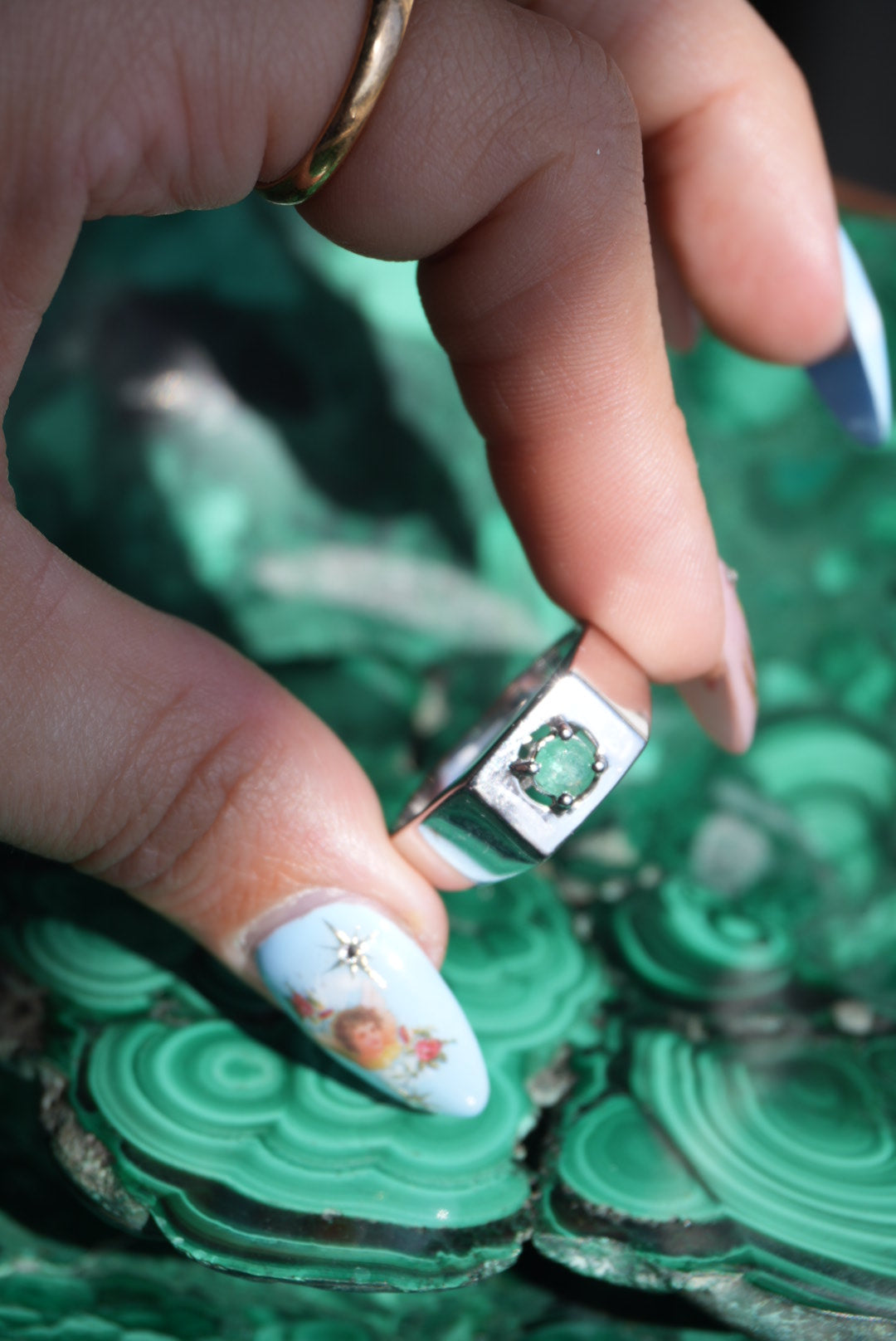 Sterling silver ring with emerald
