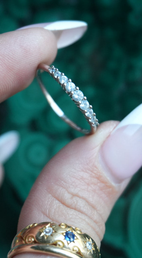 Sterling silver skinny band with glass stones along the top size 8.75