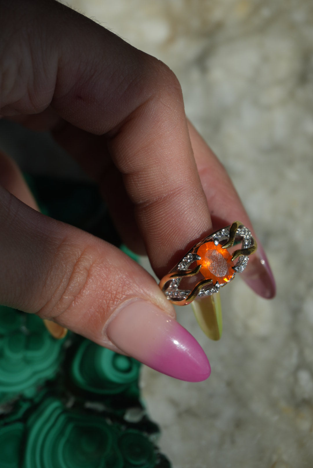 Vermeil & Sterling silver ring with orange glass center stone