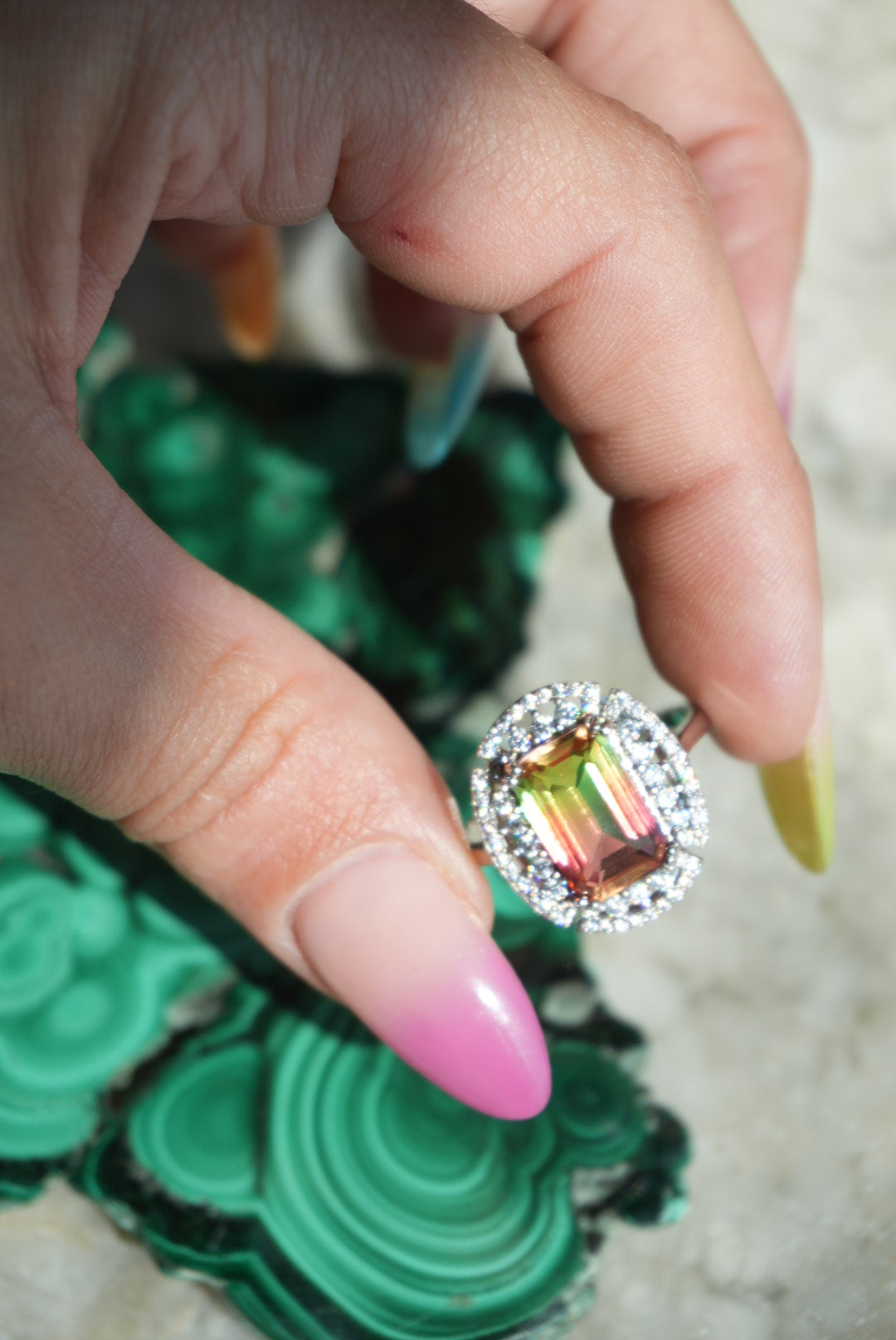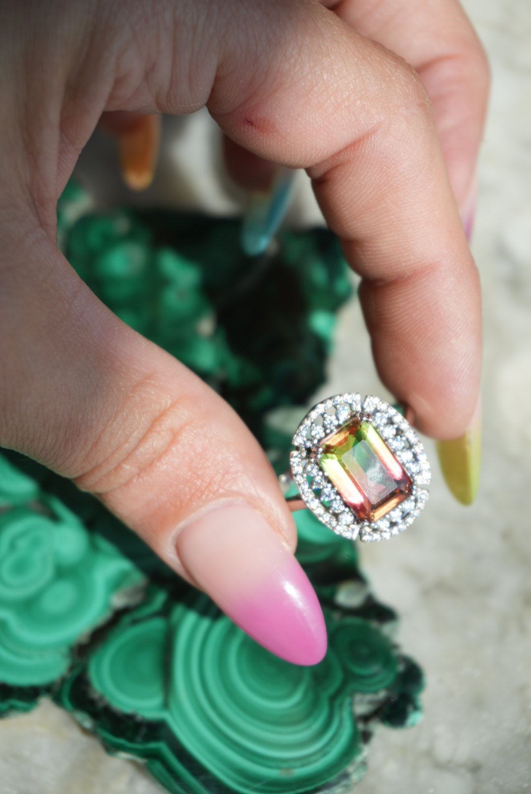 Sterling silver white topaz & watermelon tourmaline sterling silver ring