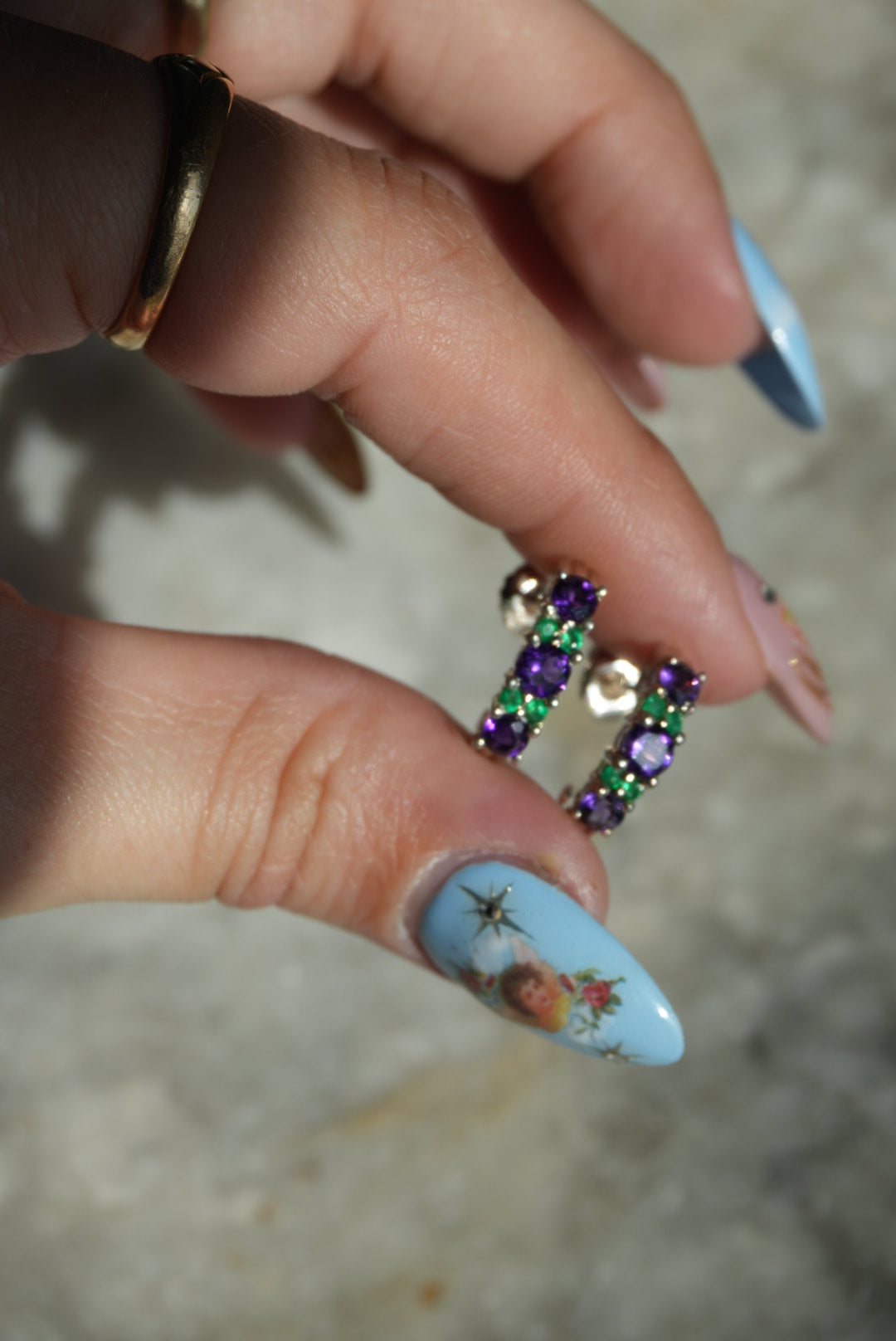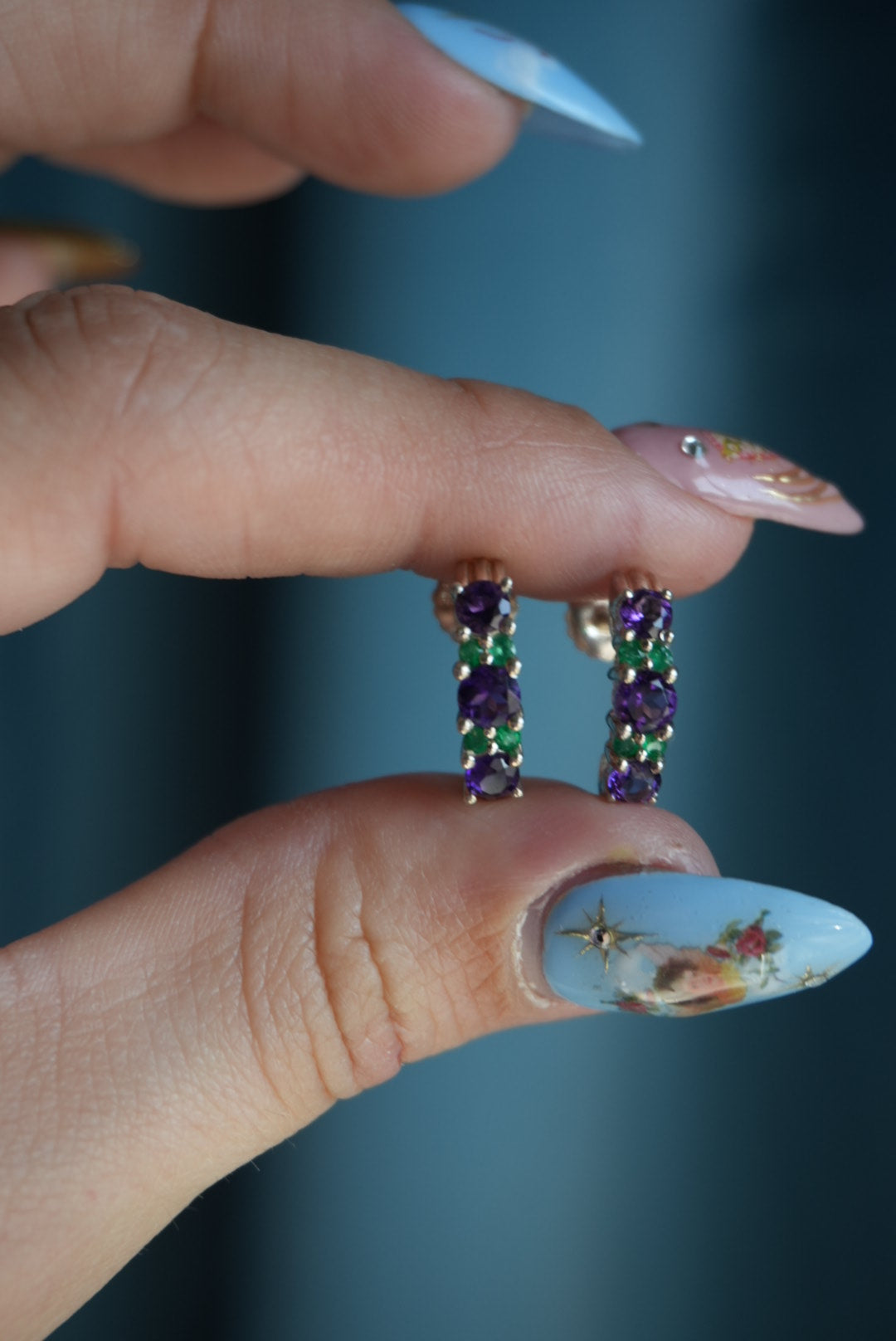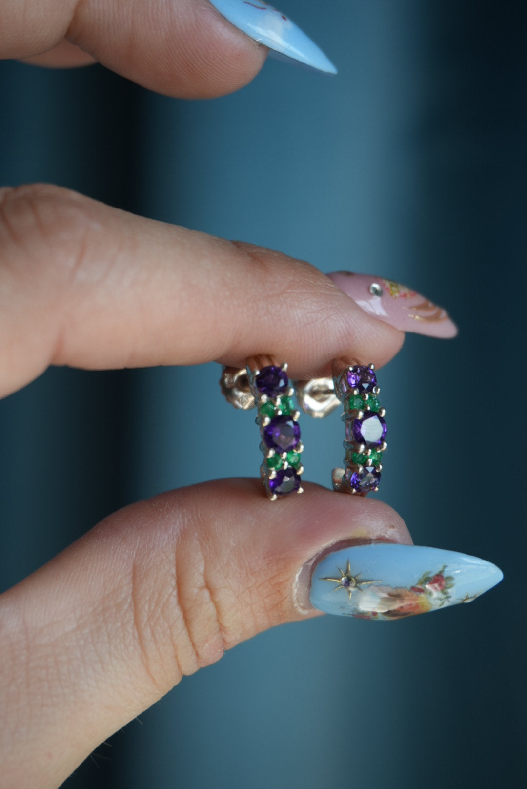 Amethyst and green glass on sterling silver