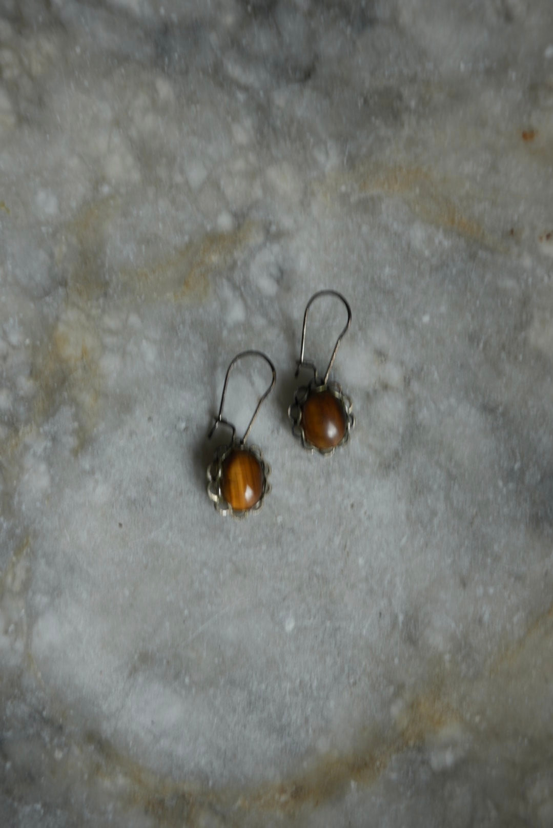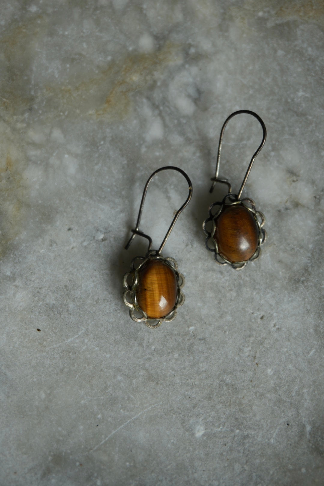 tigers eye cabochon earring set in sterling silver