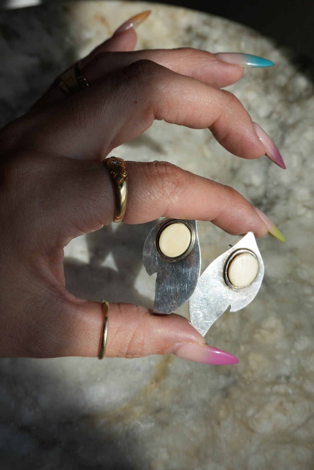 1.75 inch tall with carved “ivory” sterling silver