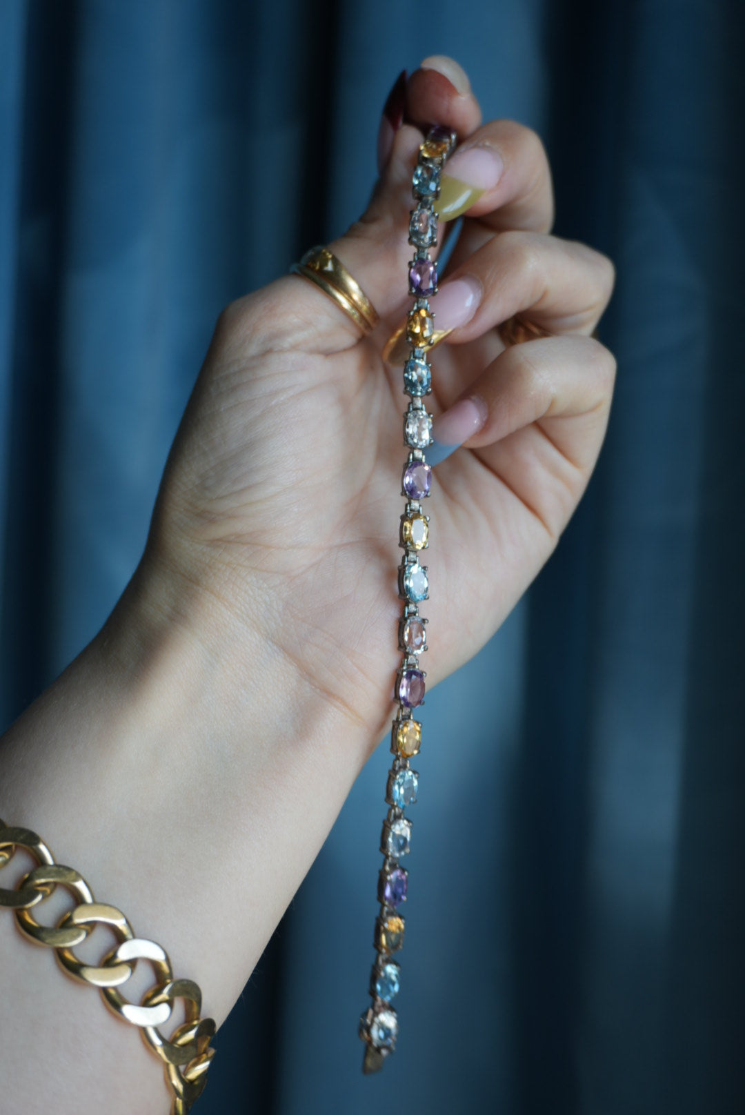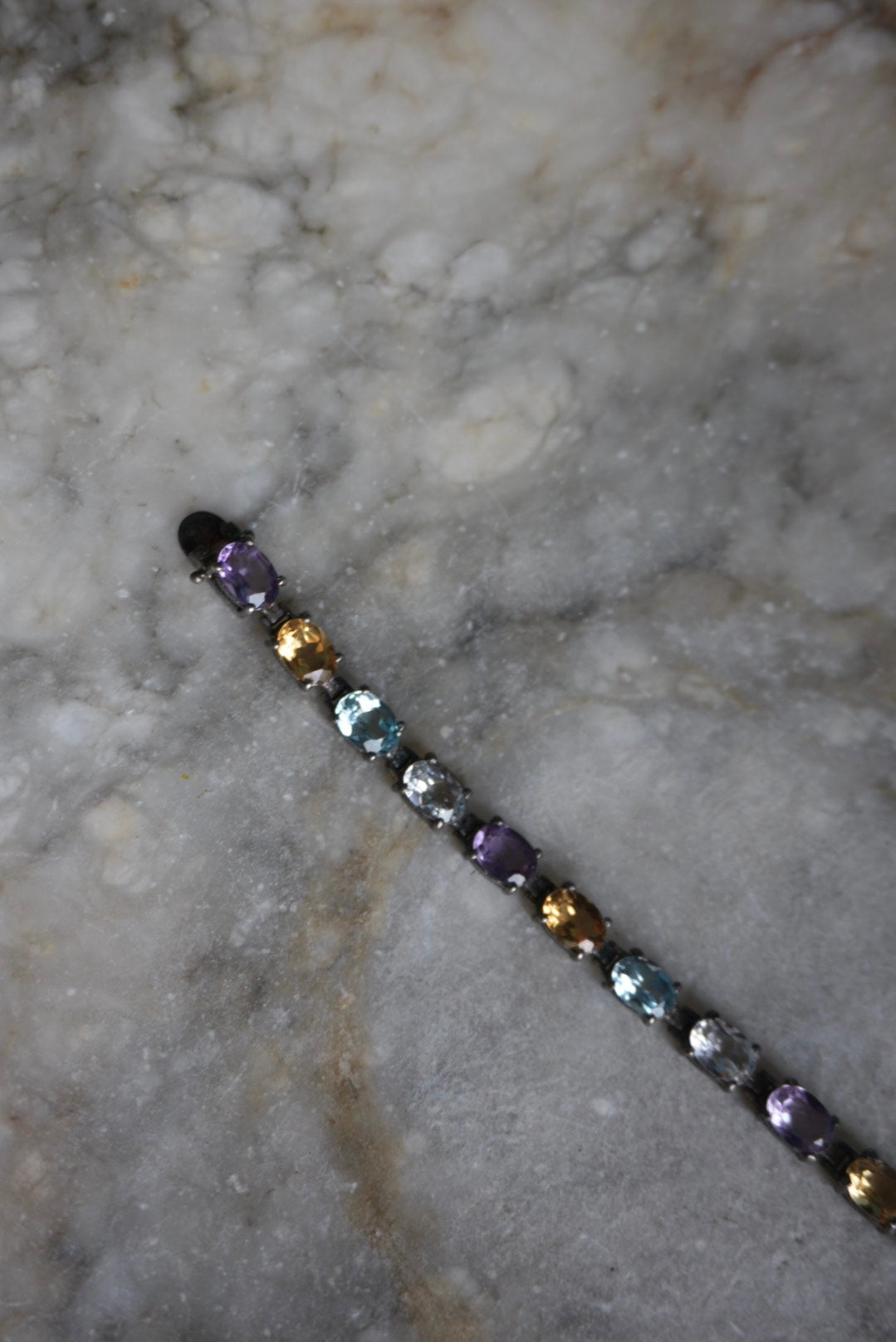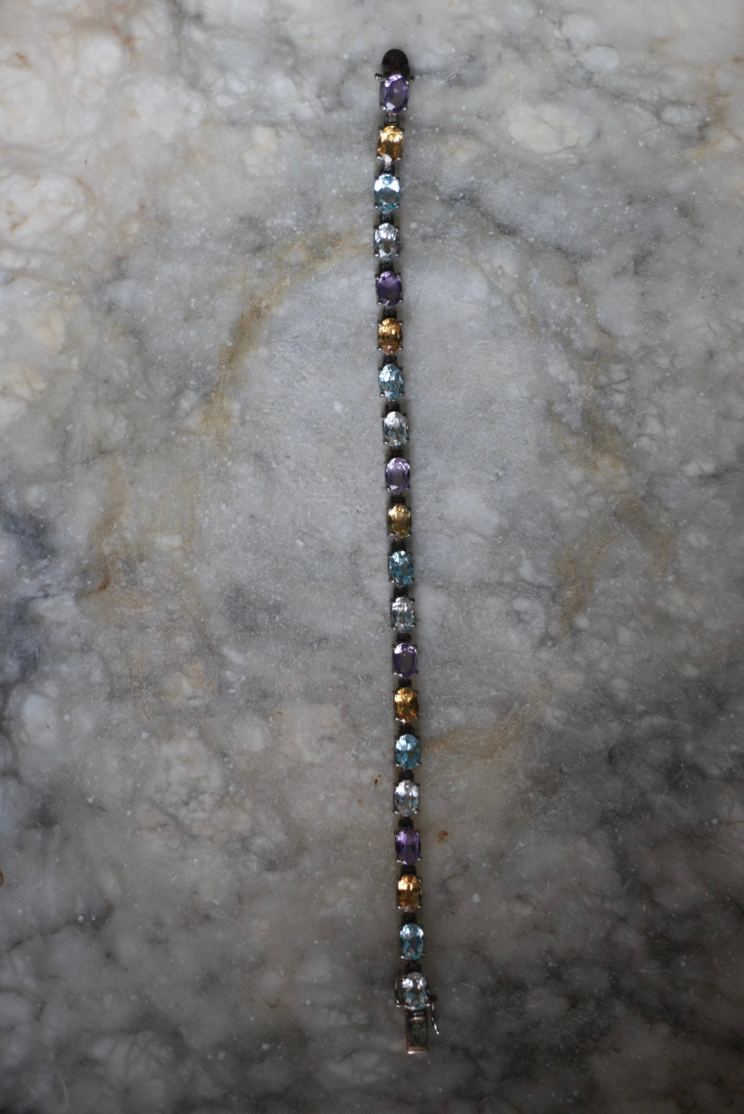 Sterling silver tennis bracelet with glass pastel stones