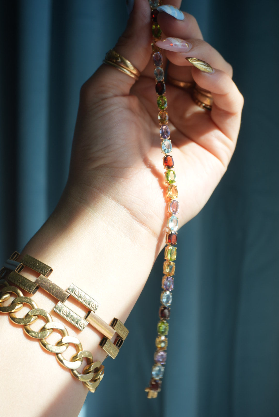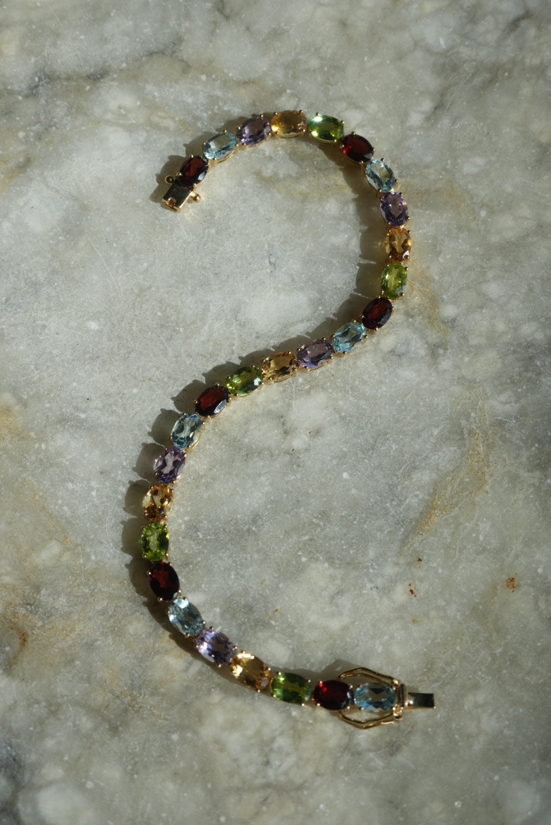 8 inch vermeil tennis bracelet with garnet, peridot, topaz, citrine & amethyst stones