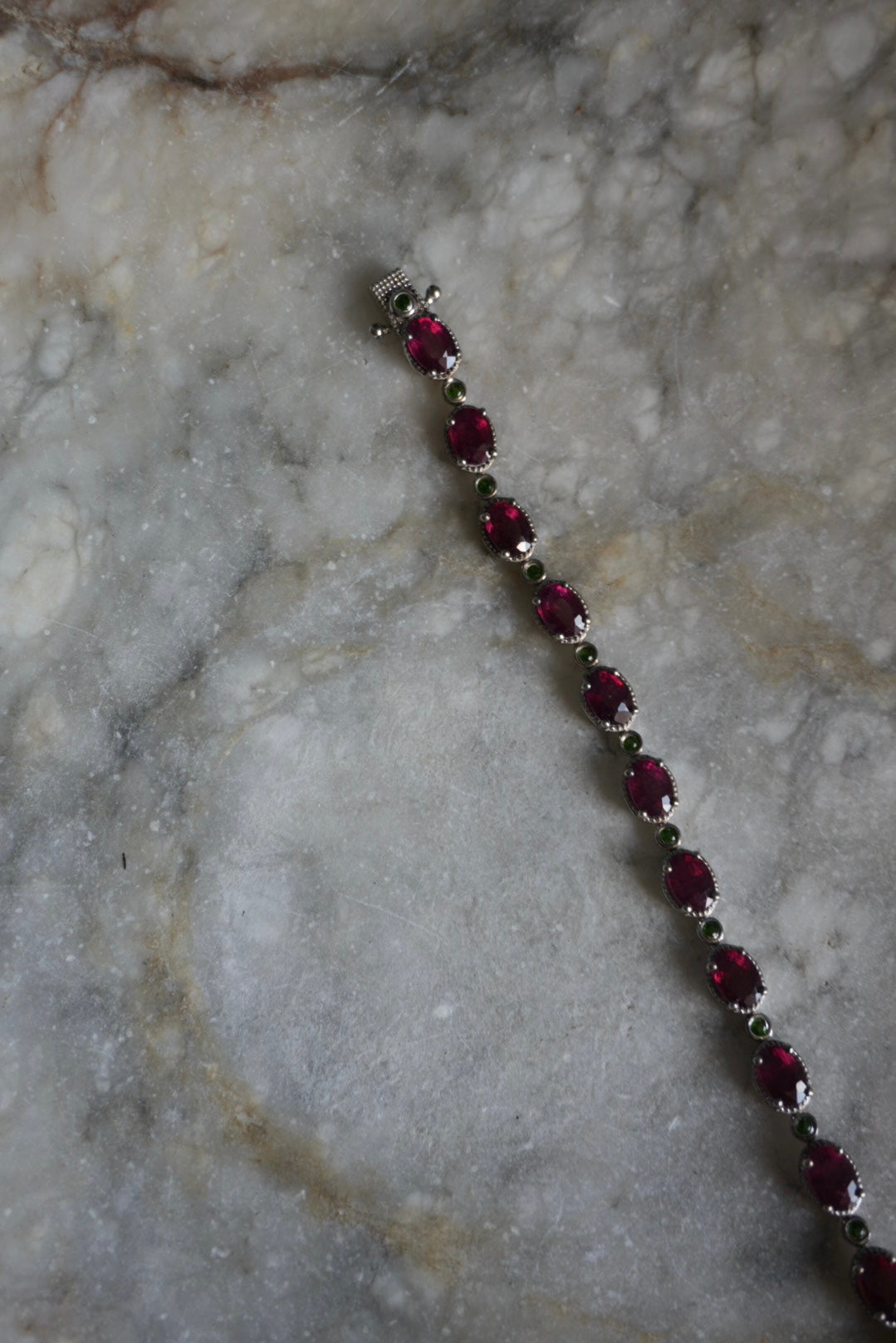 7.25 inch length sterling silver with lab rubies and chrysoprase