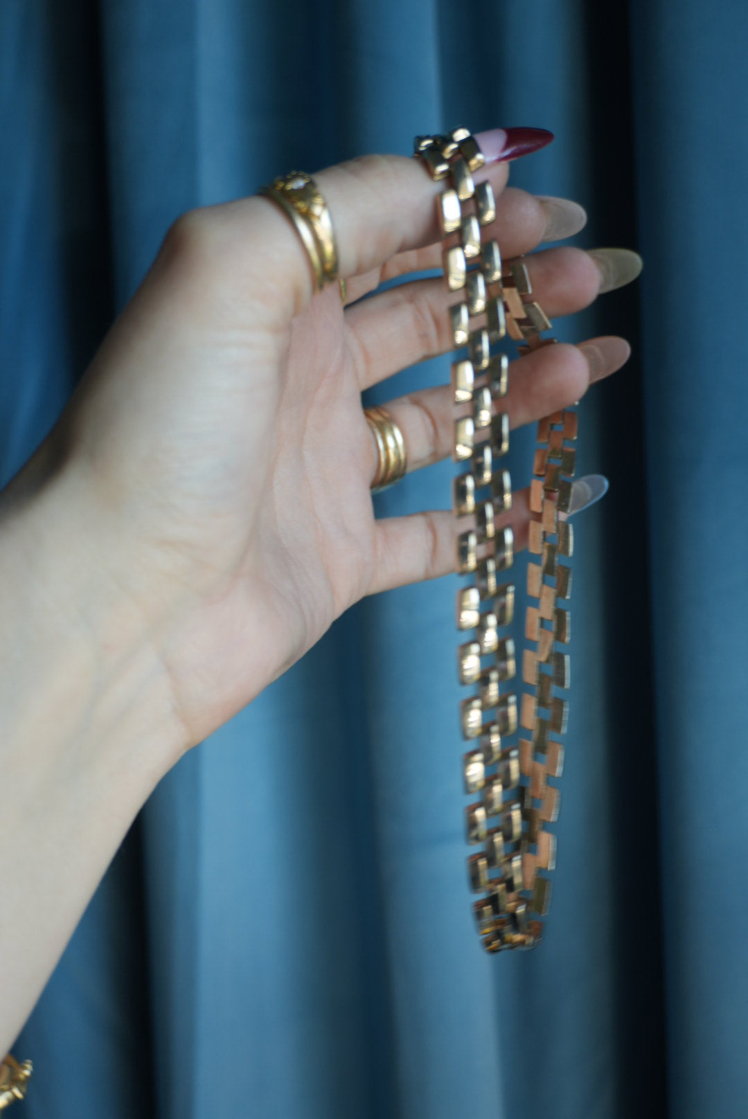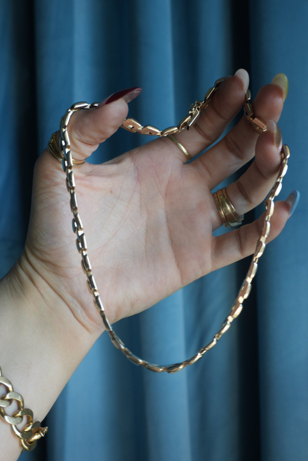 Squared Leopard link necklace 16” length in pale gold vermeil