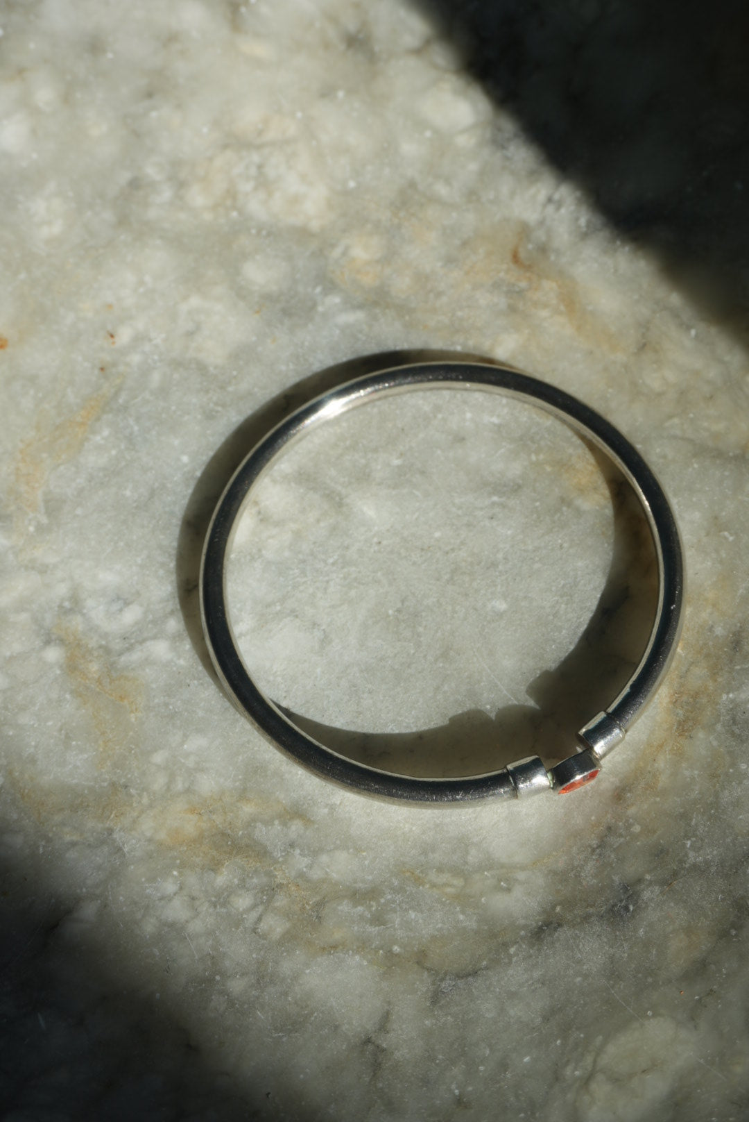 2.75 inch wide sterling silver bangle bracelet with orange glass stone
