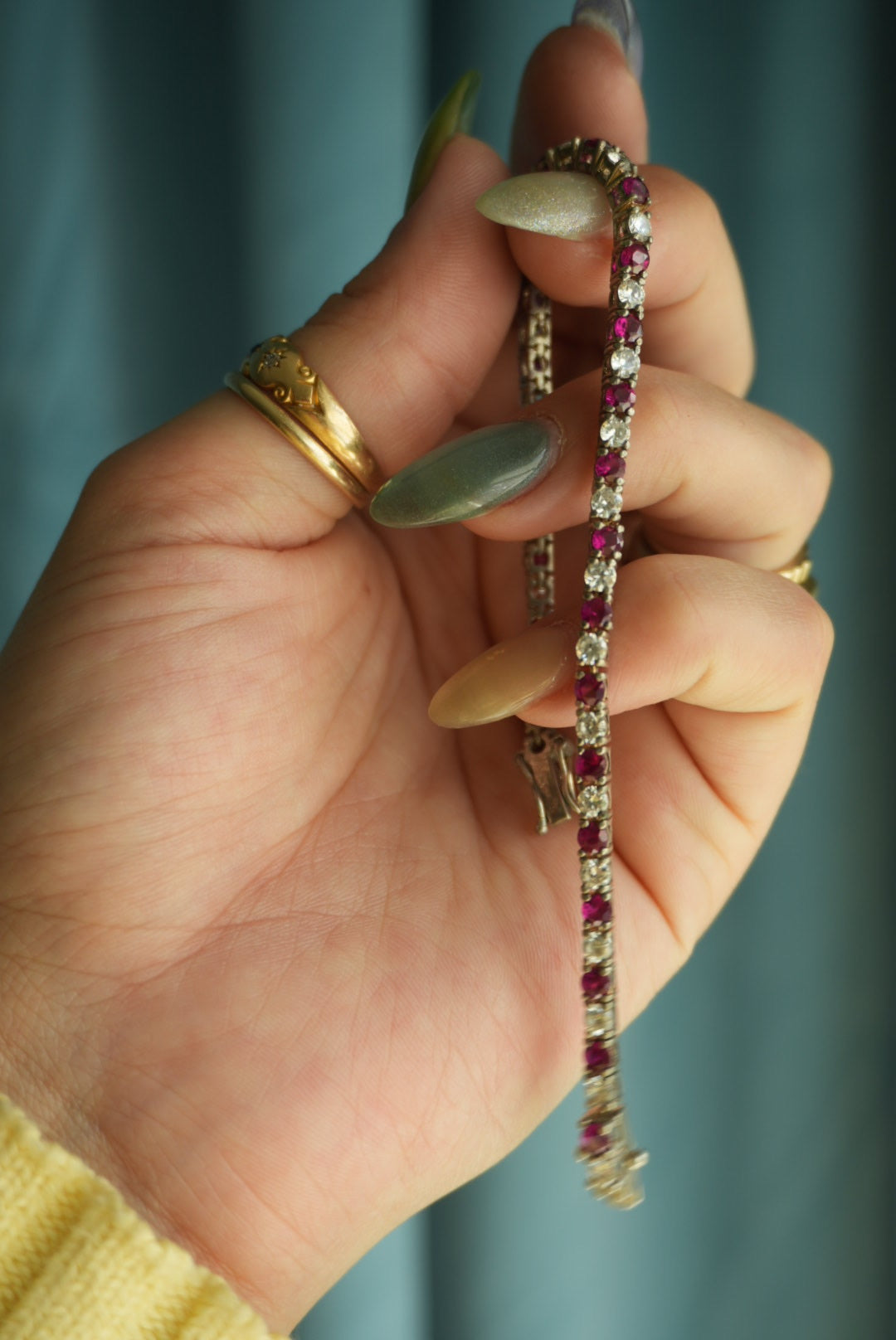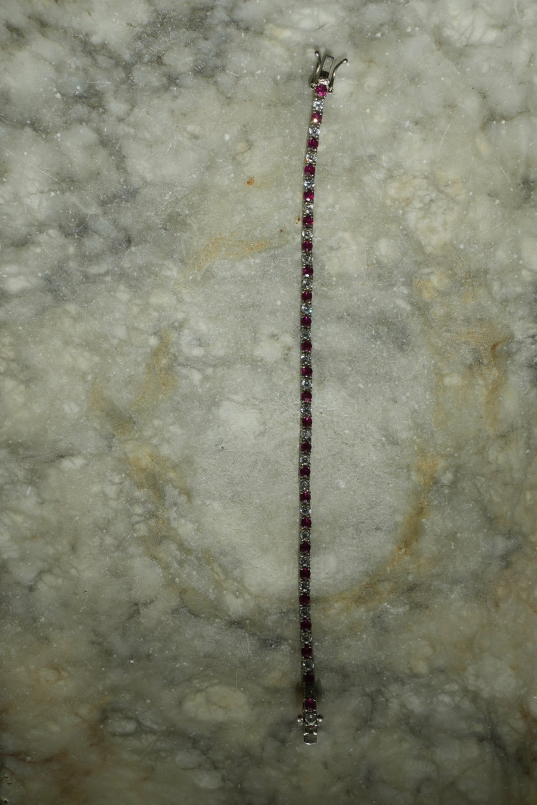 7.25 inch length sterling silver bracelet with glass stones and lab ruby
