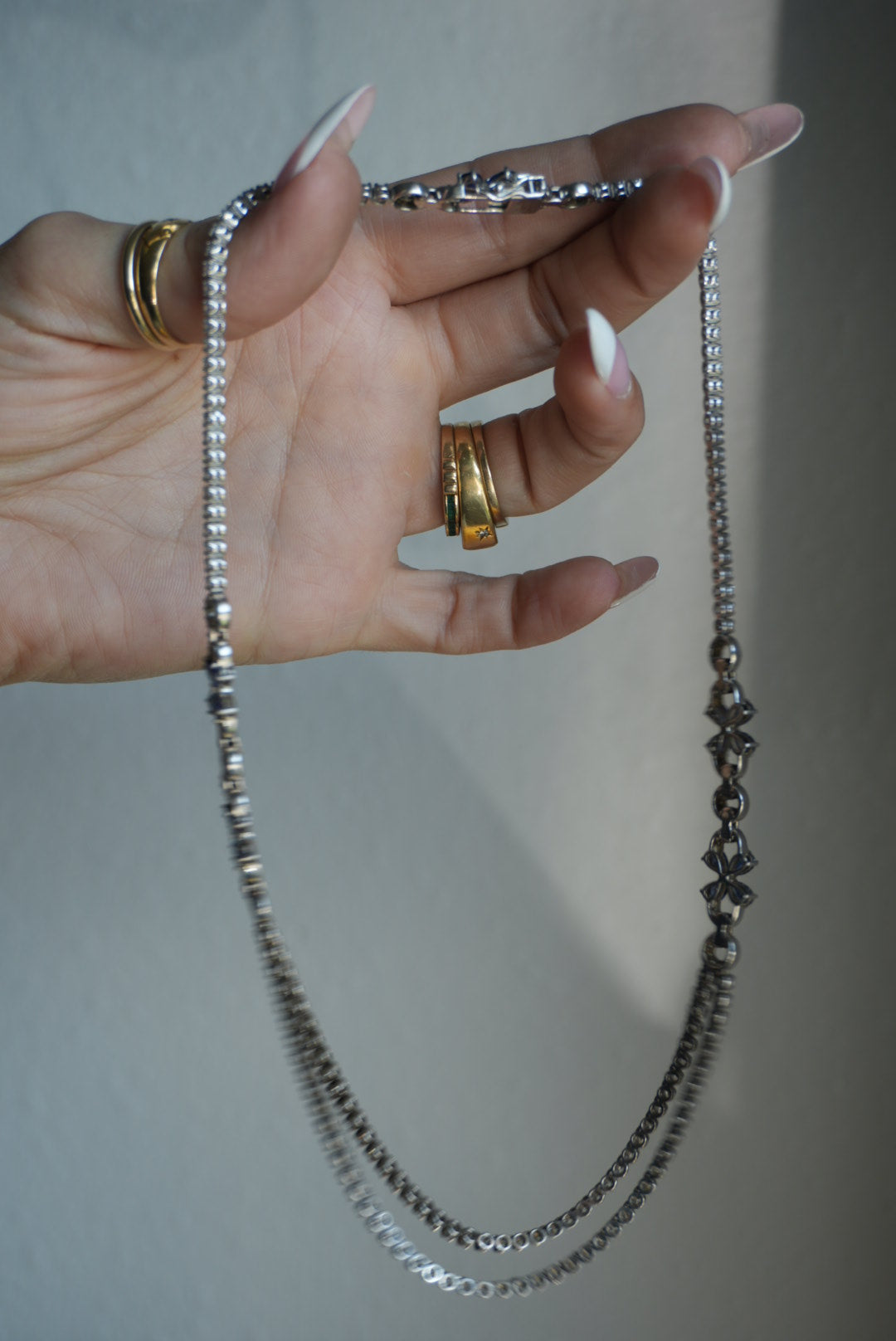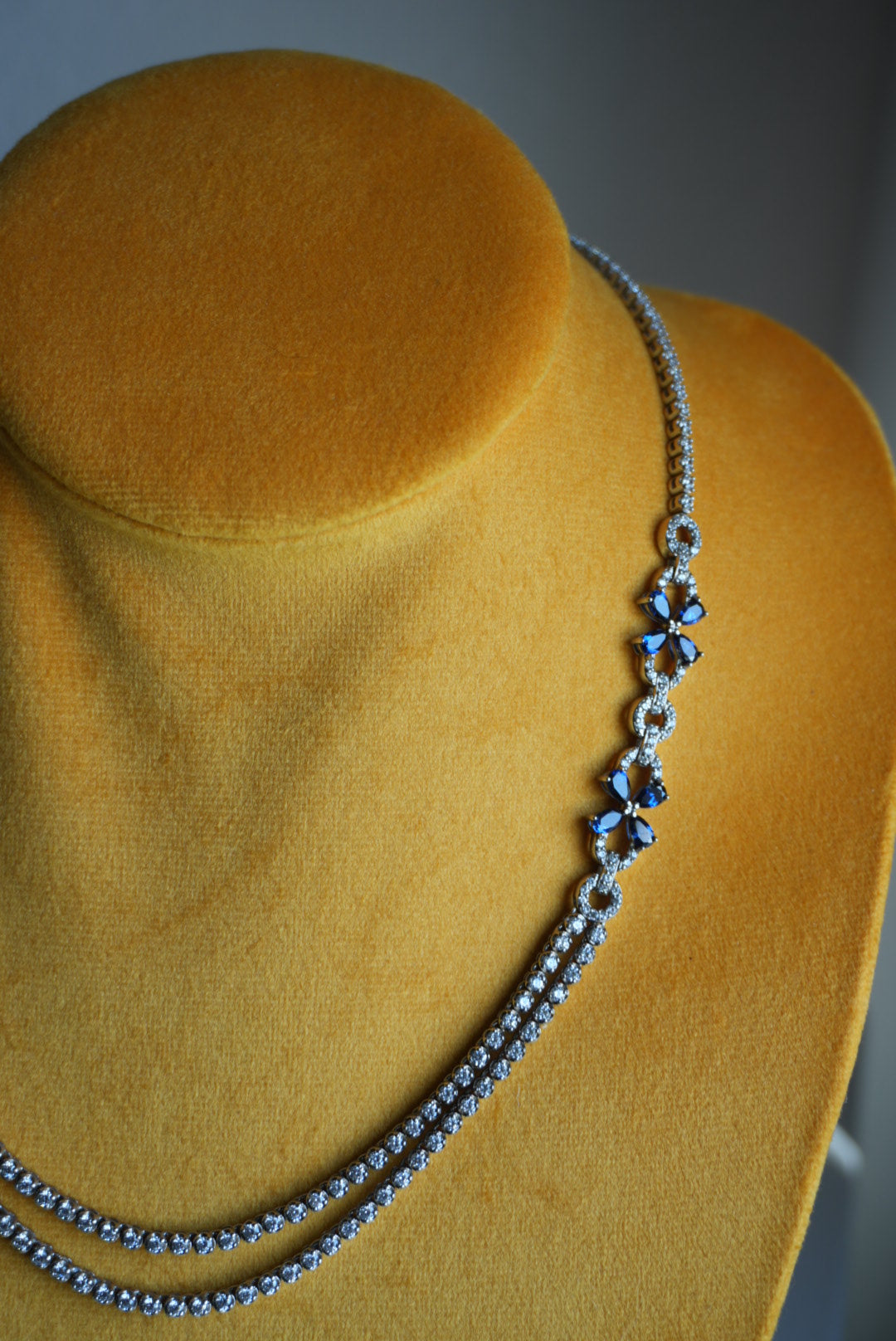 16inch sterling silver tennis necklace with deep blue sapphires & cz stones