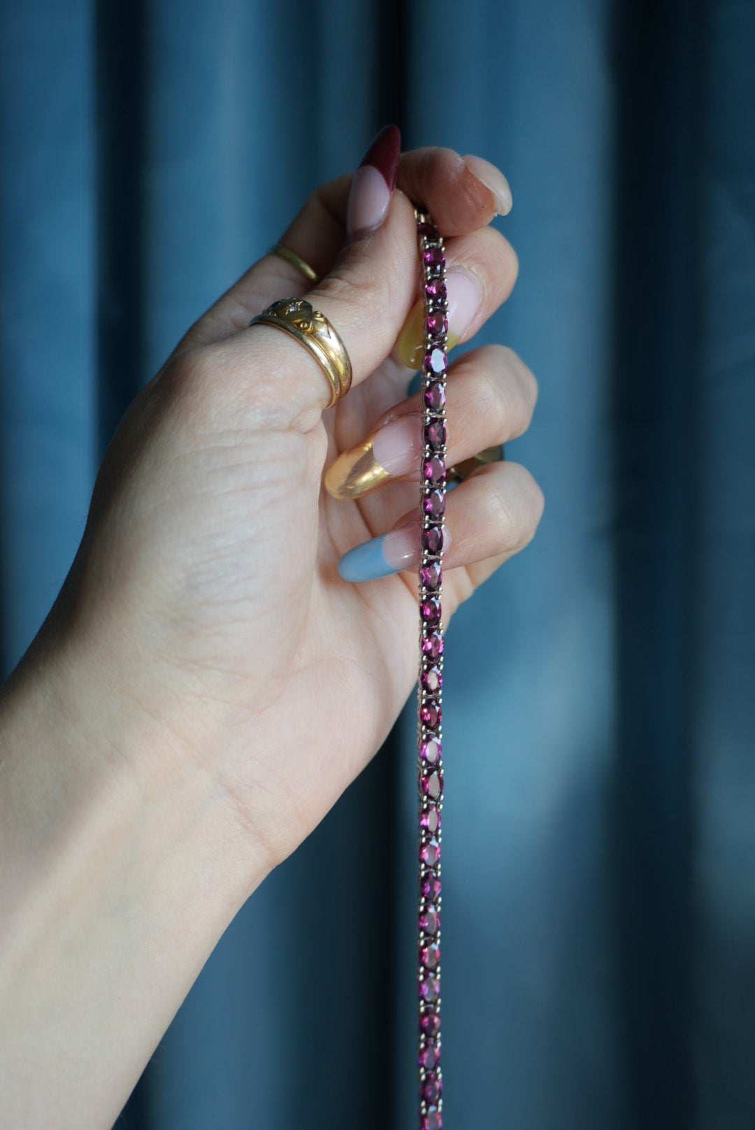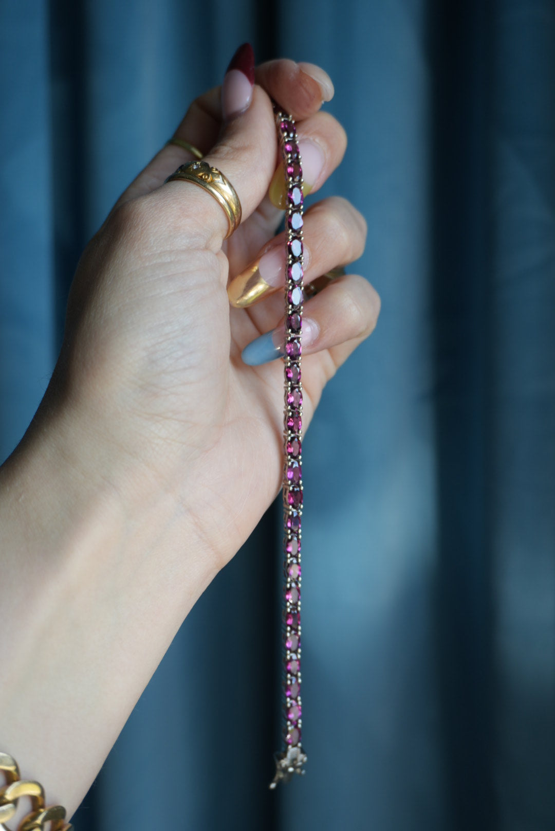 7.25 Inch sterling silver tennis bracelet with tourmalines