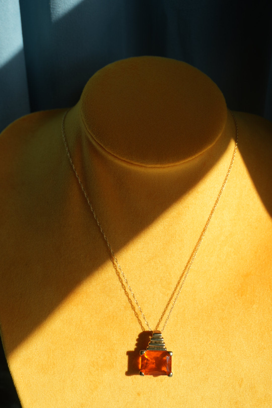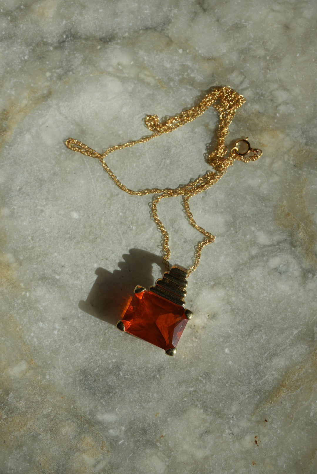 18” length gold vermeil chain and charm with large orange glass stone