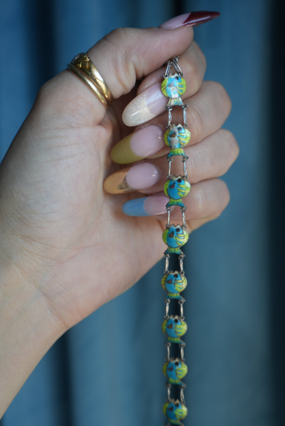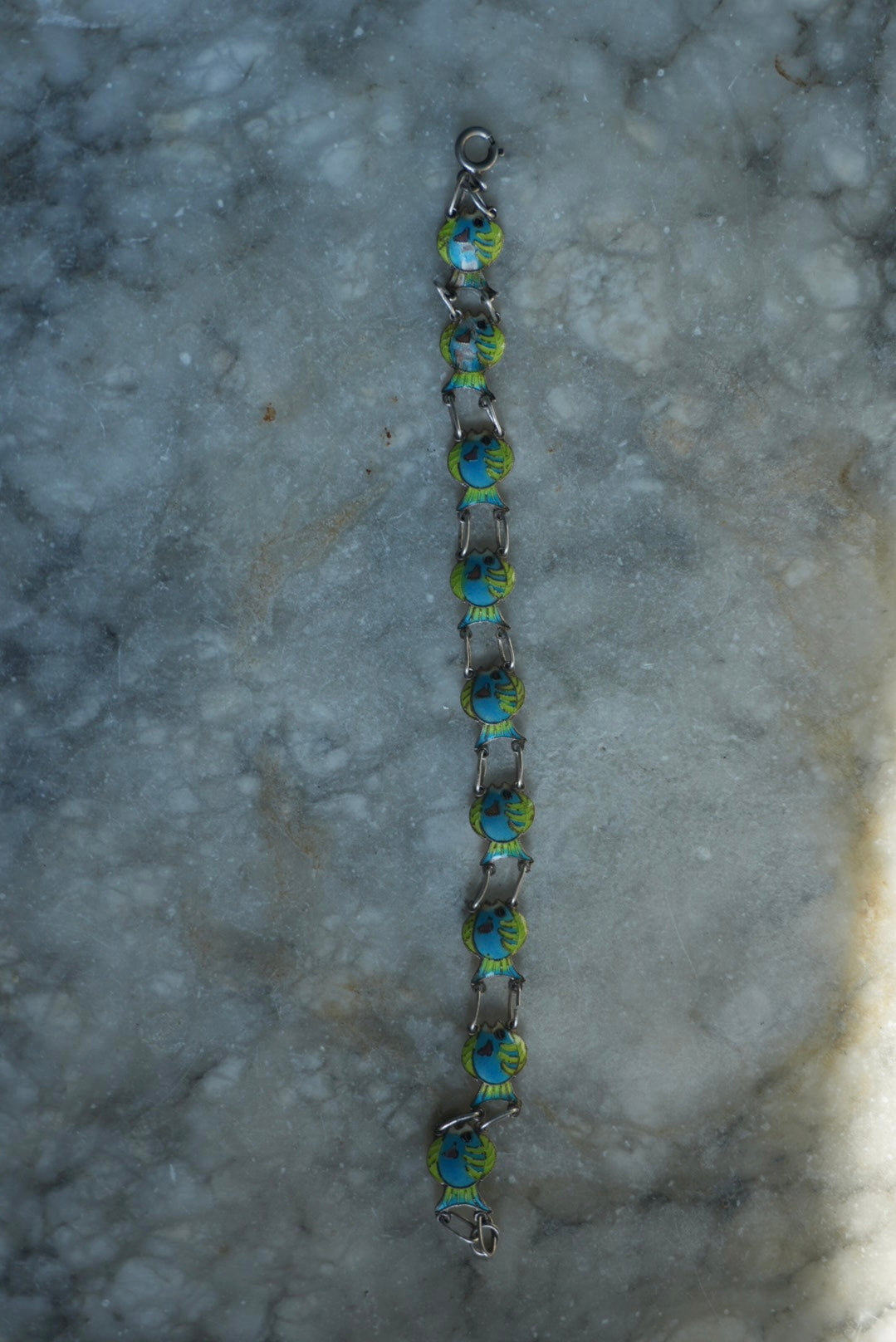 Darling 6.8” length sterling bracelet with enamel fish !