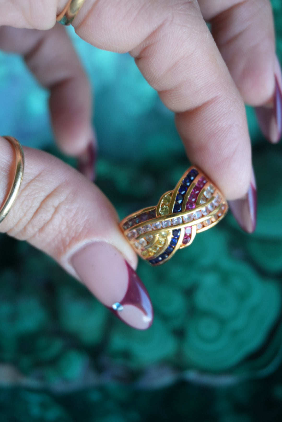 Vermeil ring with ruby citrine & sapphire stones
