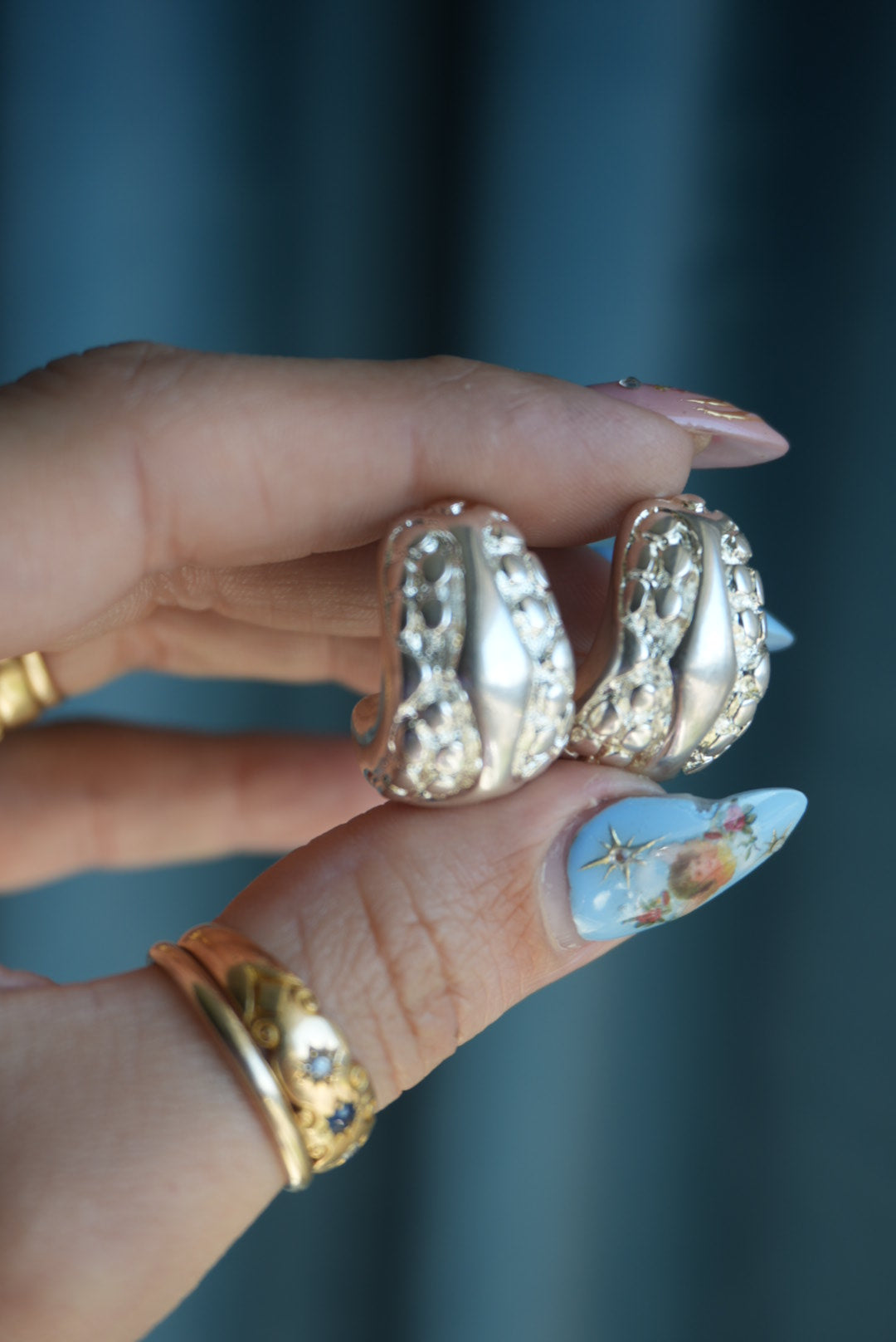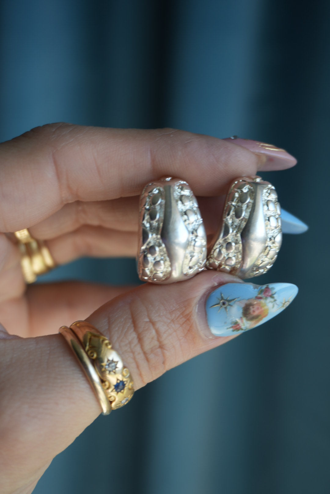 Sterling Silver over resin half hoop earring. The perfect chunky Sterling piece.