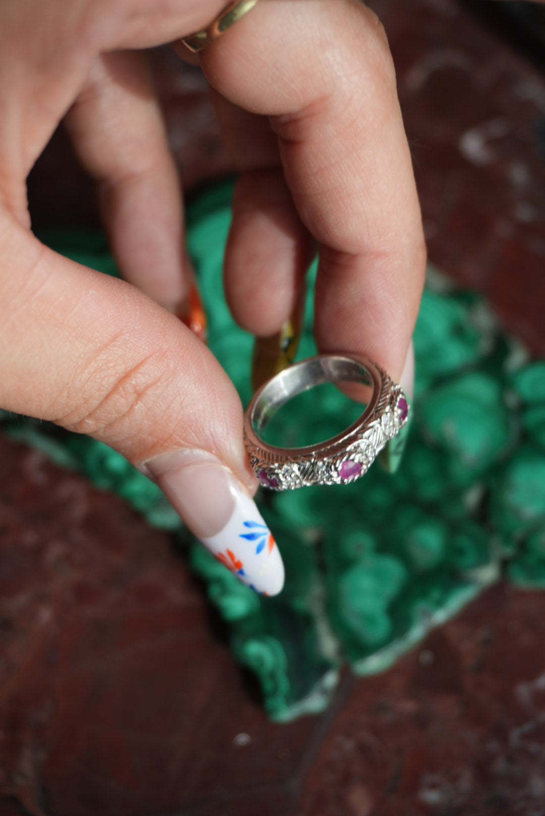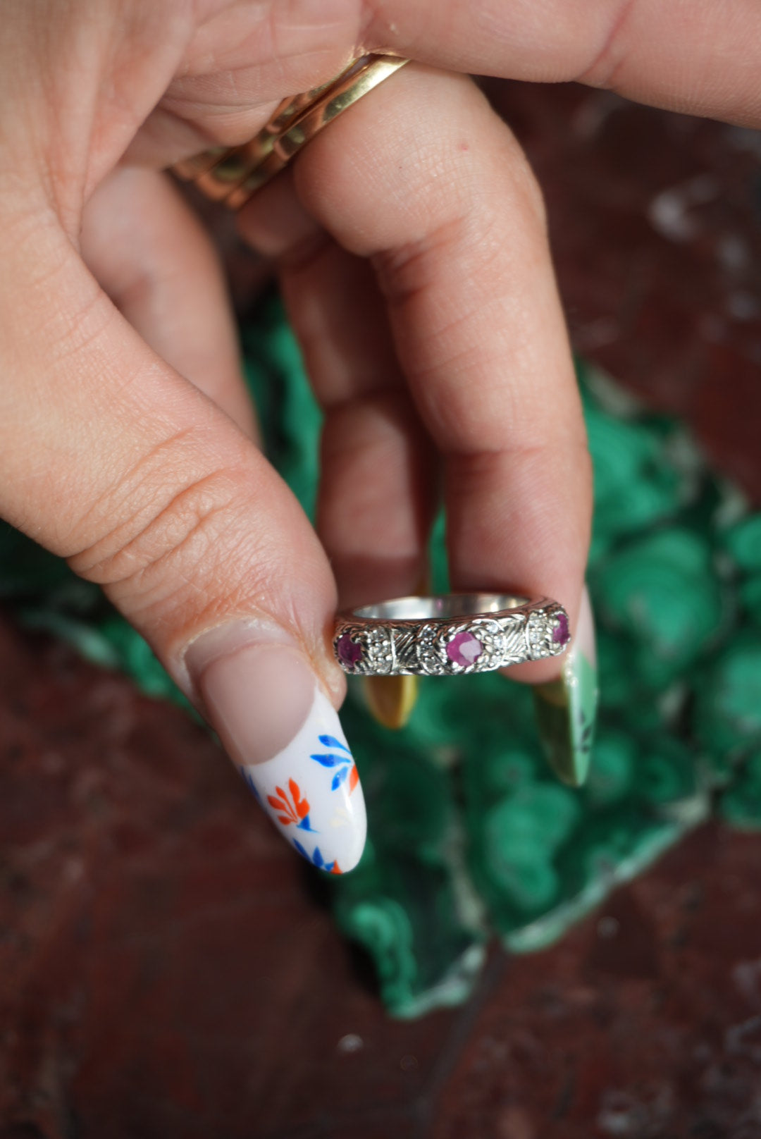 Sterling silver Judith Ripka band in sterling silver with 3 CZ red stones