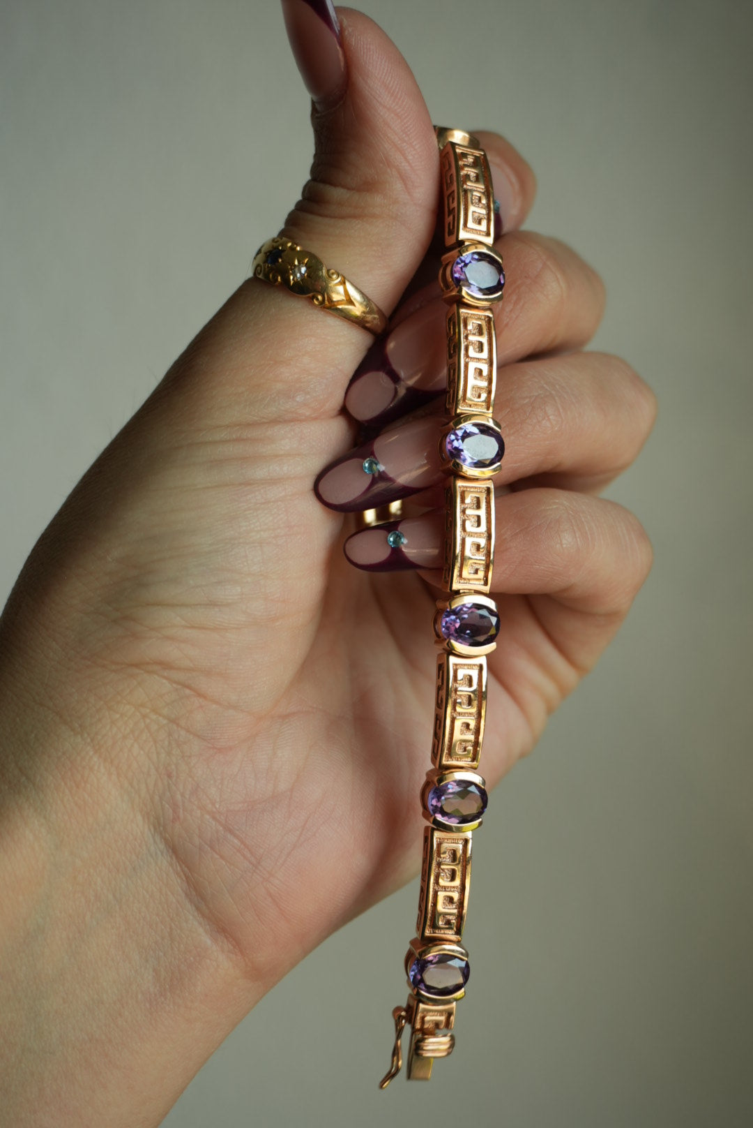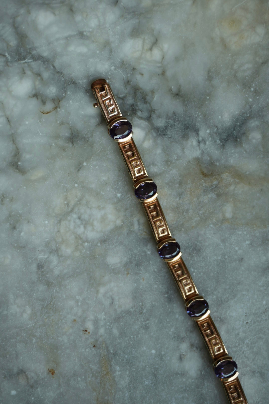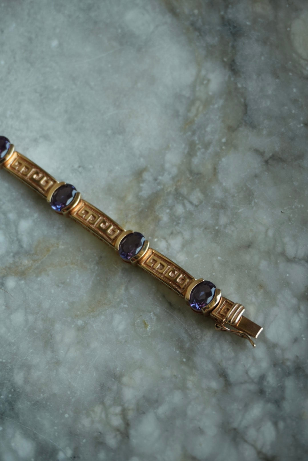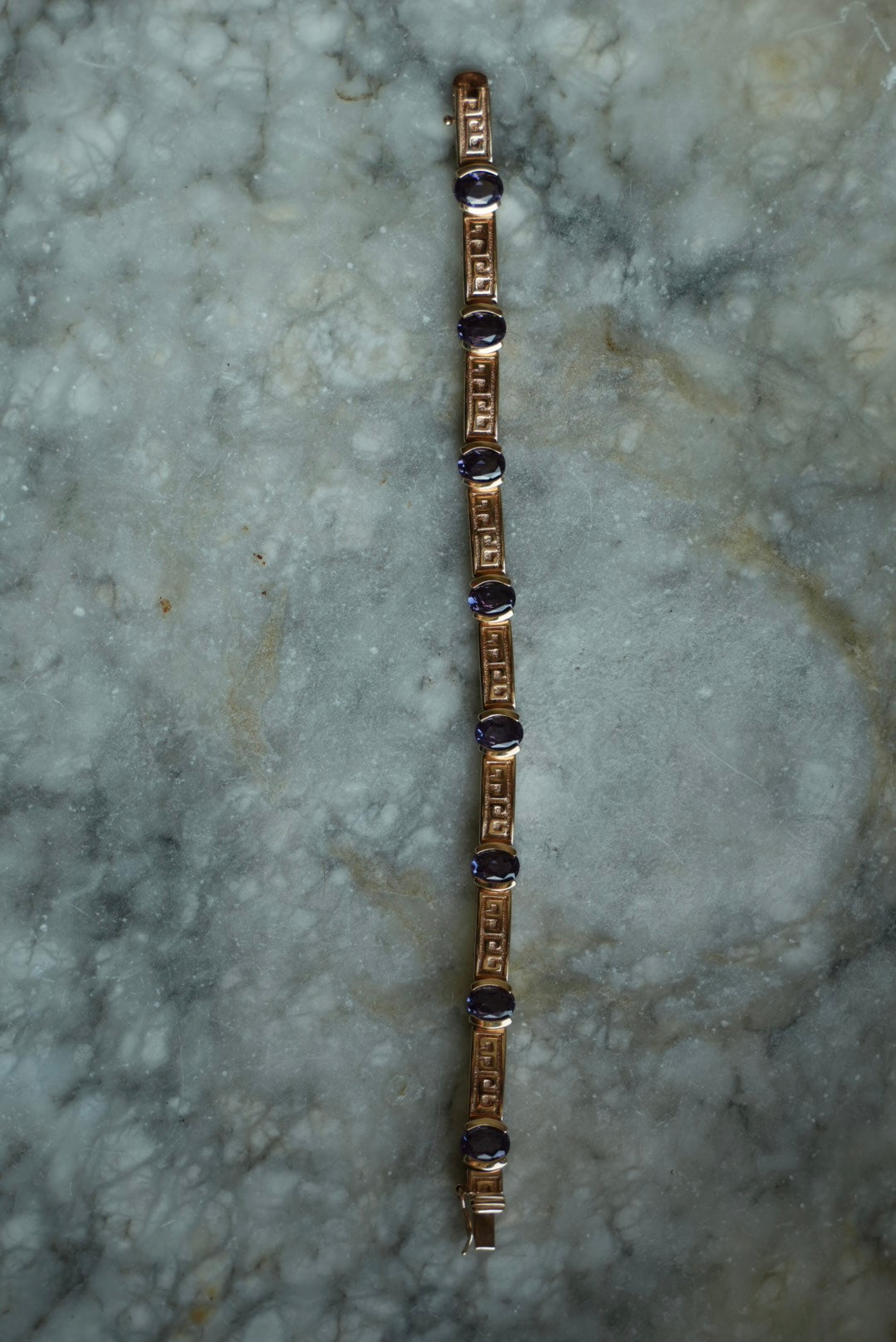 7.25 inch vermeil tennis bracelet with amethyst stones