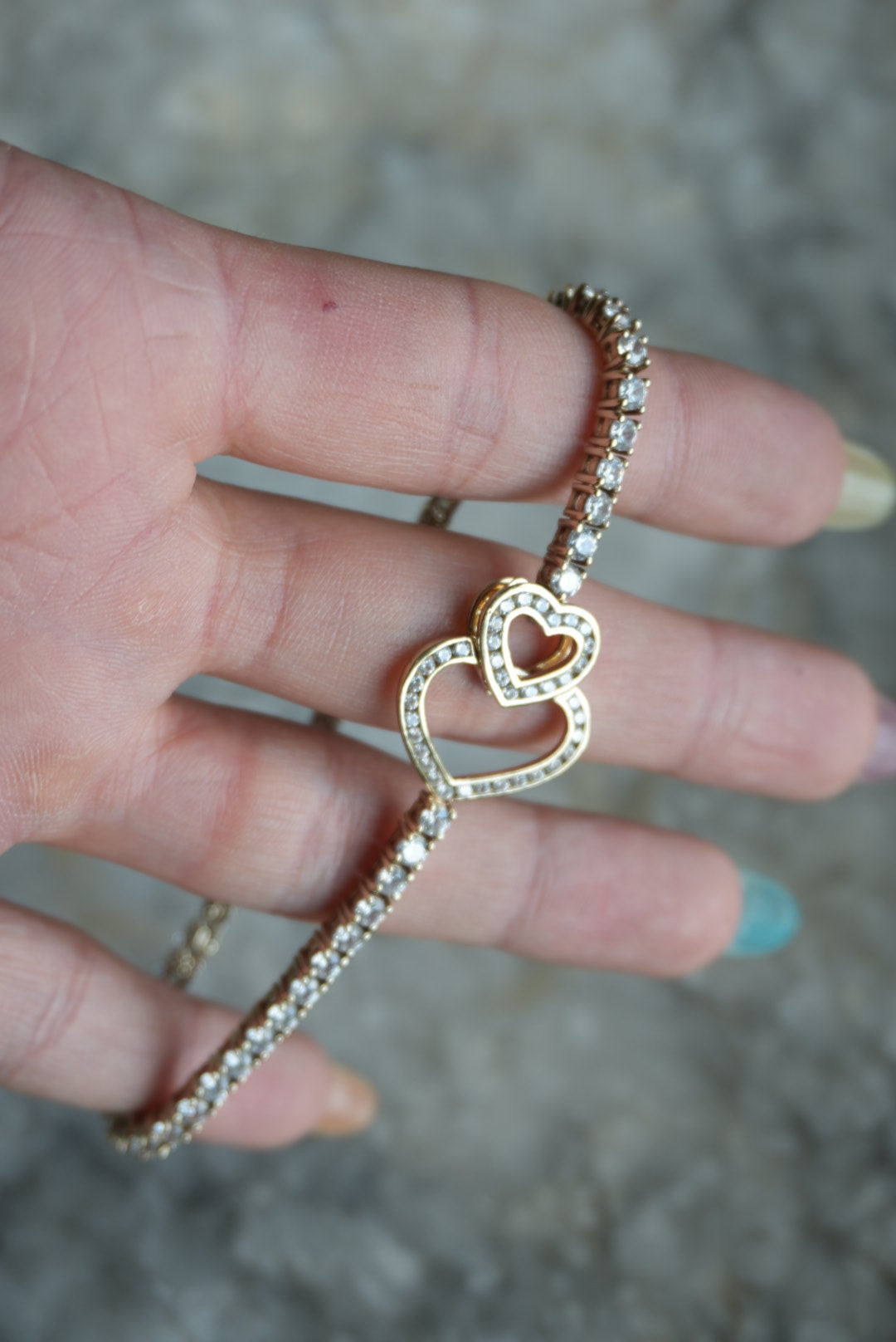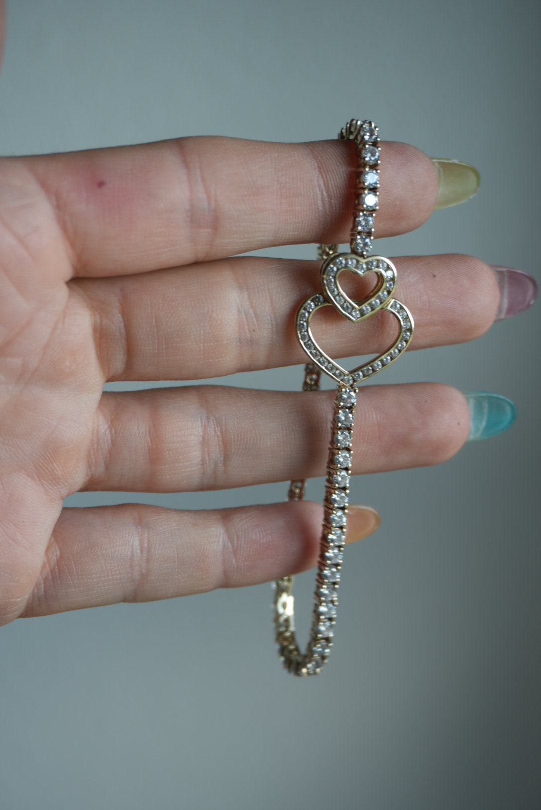 8 inch vermeil tennis bracelet with a heart clasp