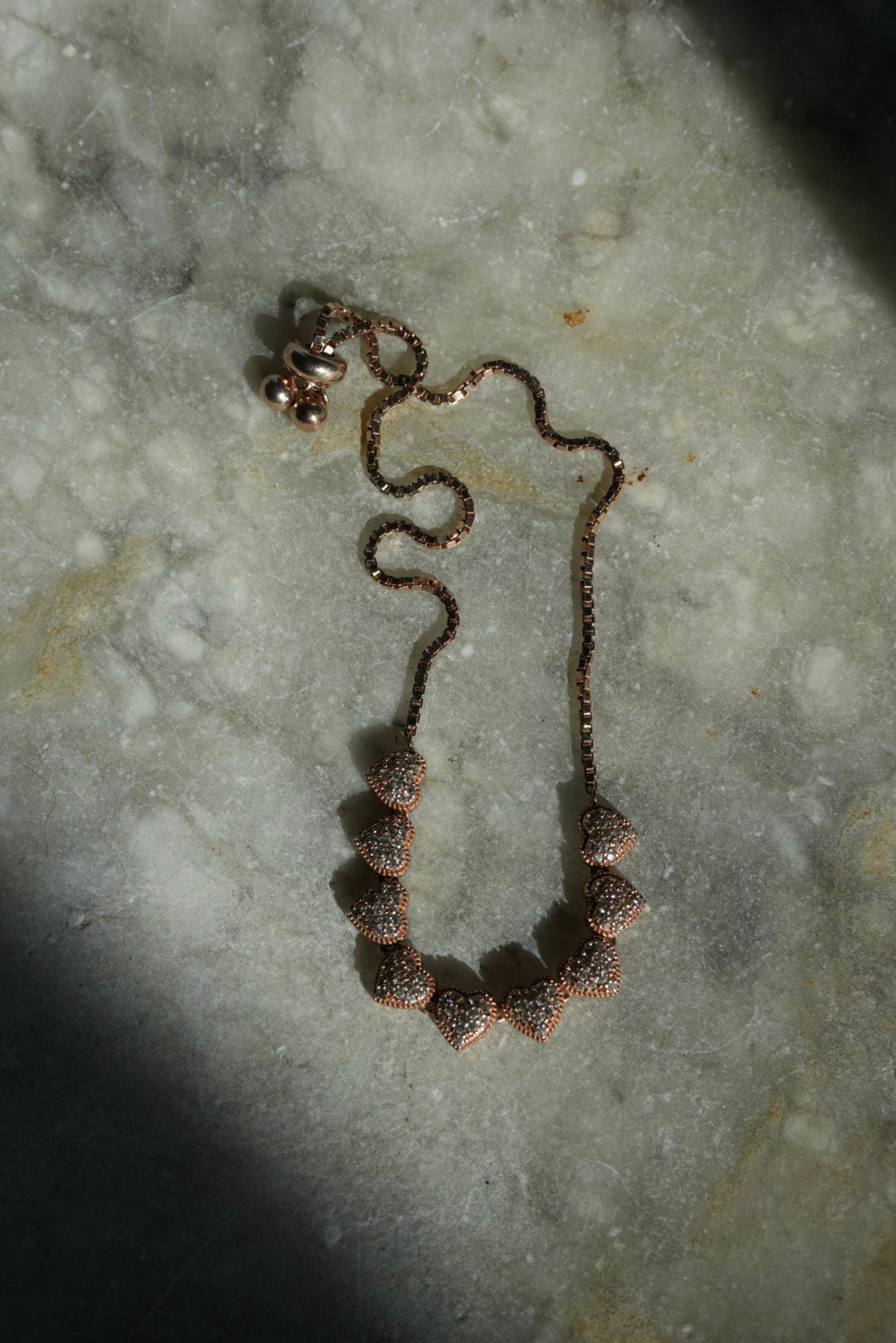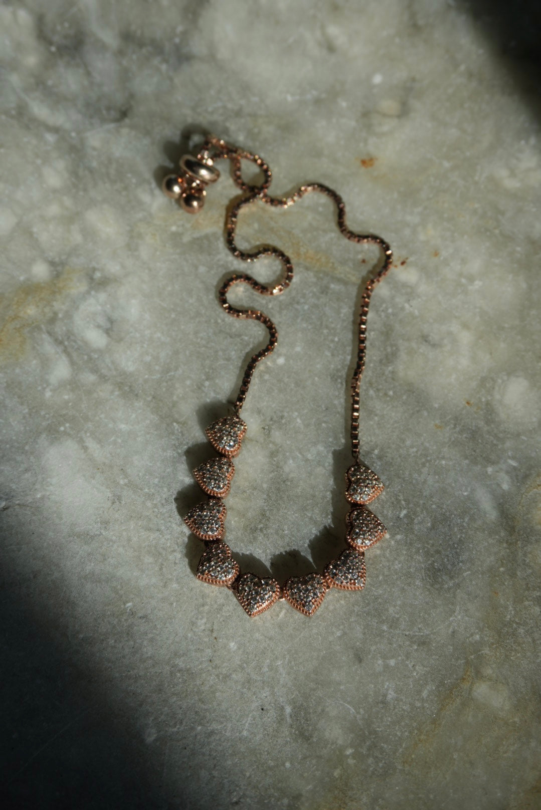 Maximum 9” length adjustable slide bracelet rose gold vermeil with glass stones