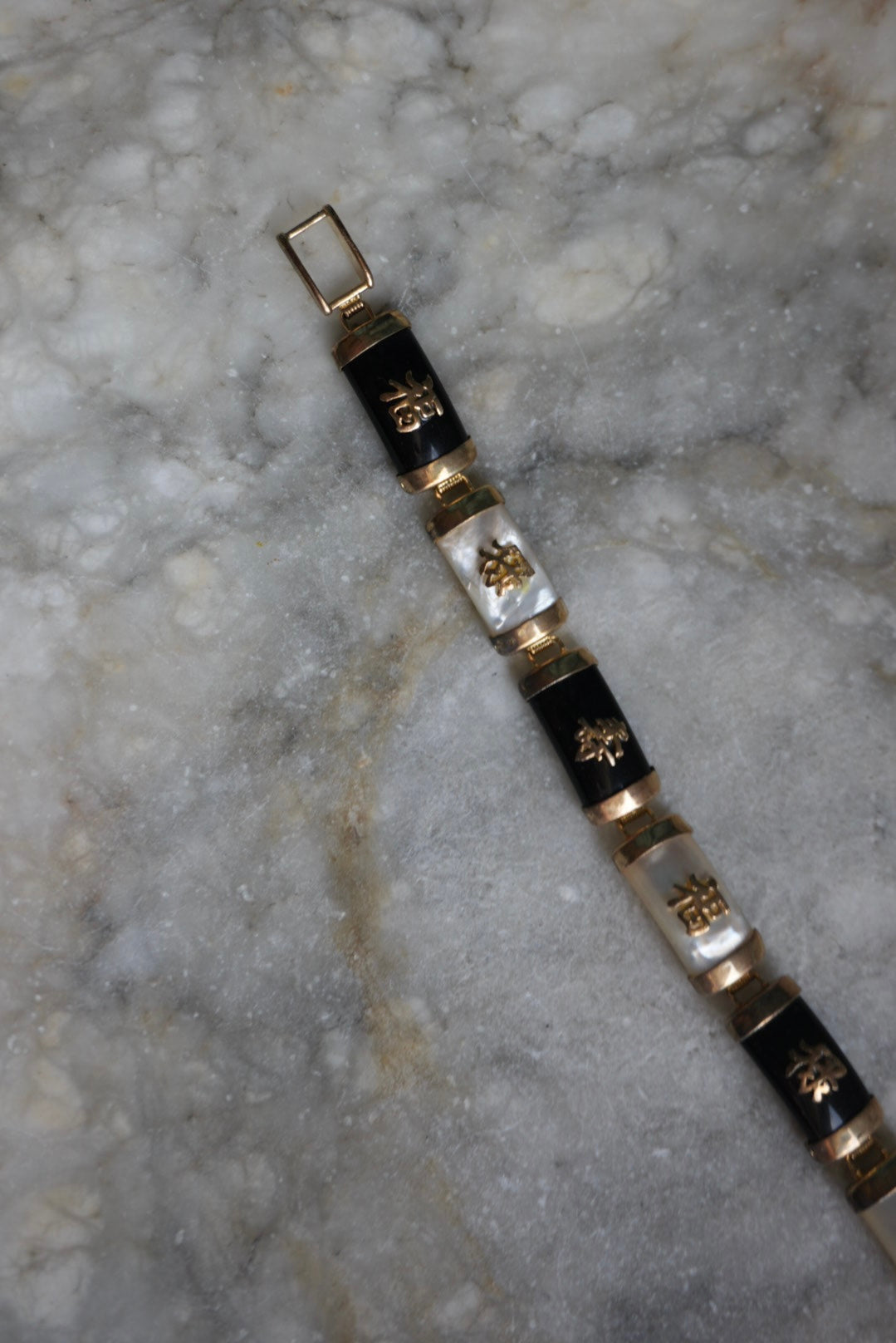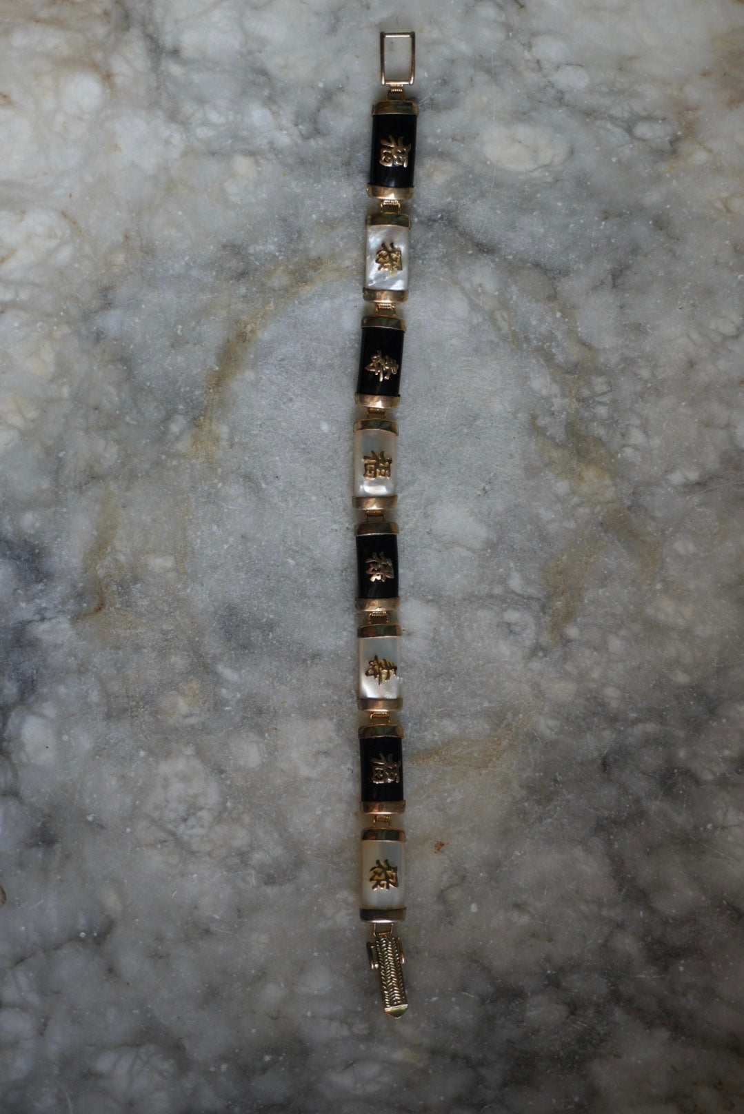 8 inch black onyx & mother of pearl Asian style bracelet