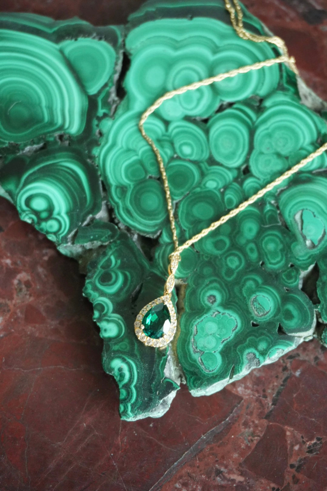 Gold vermeil 18” length chain and pear pendant with glass stones