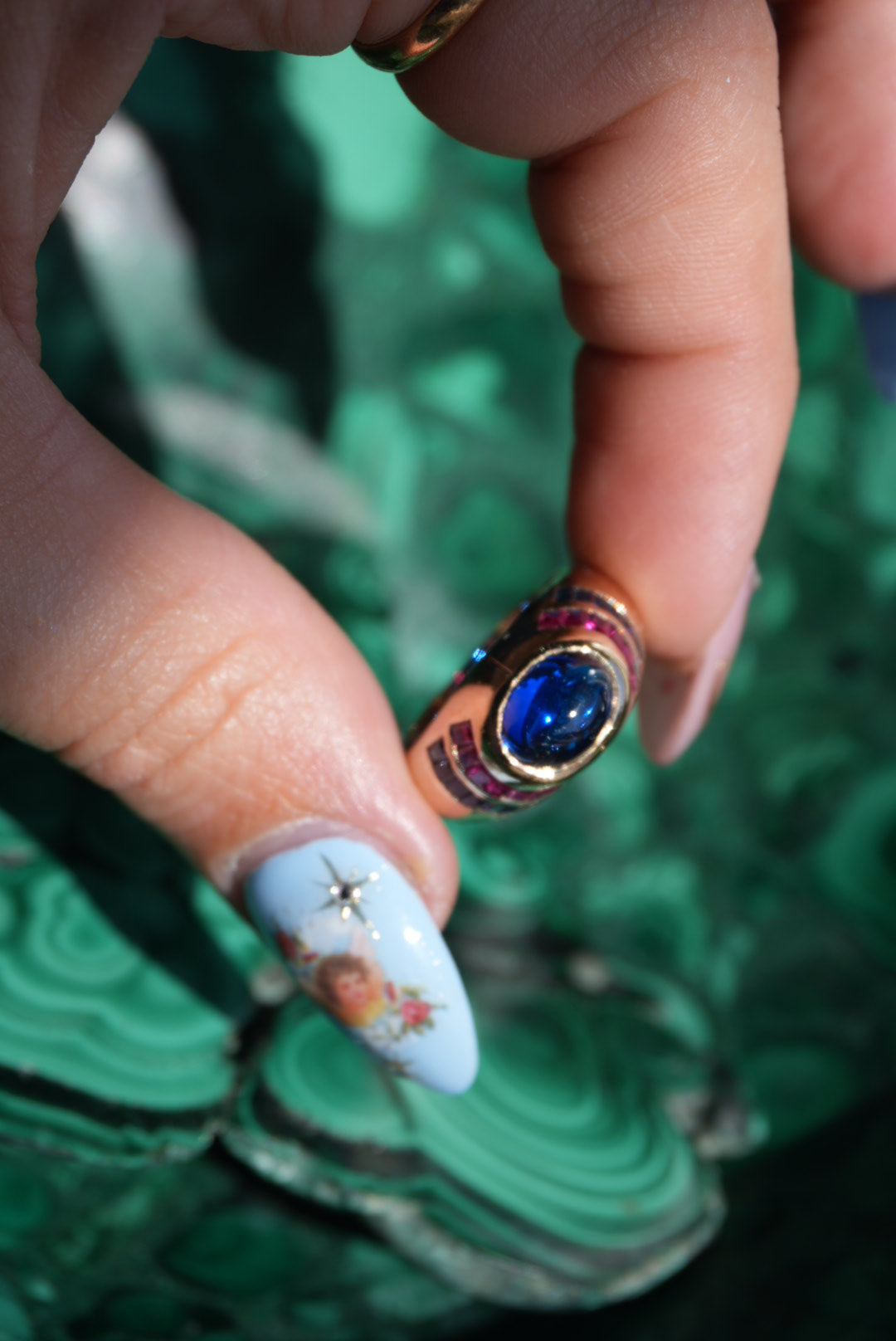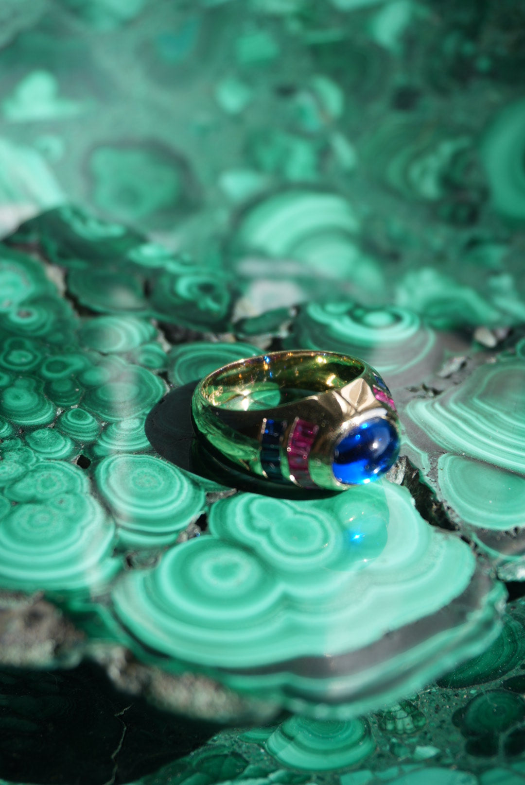 Size 7 vermeil ring with lab grown sapphires & rubies