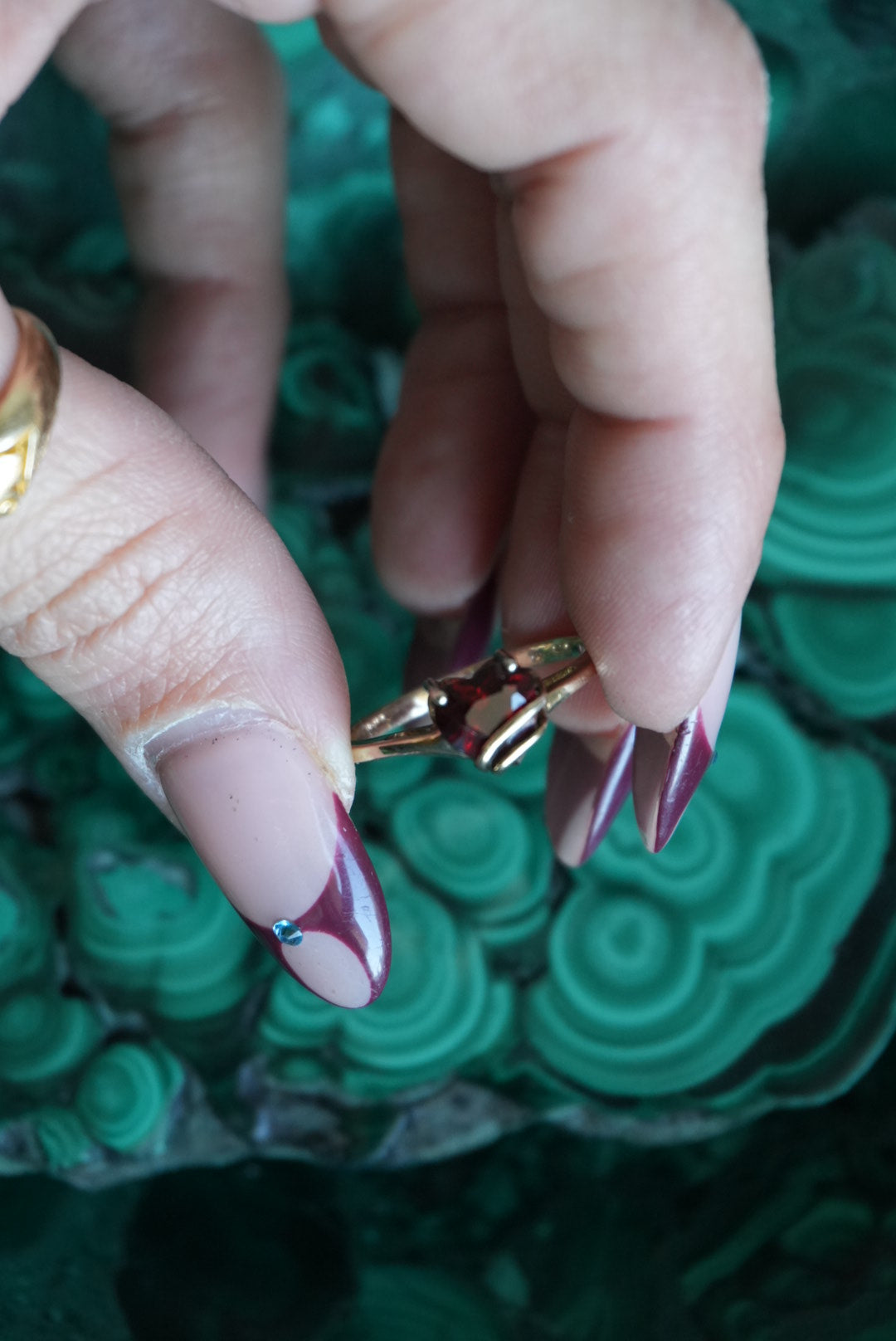 Vermeil ring with a garnet heart