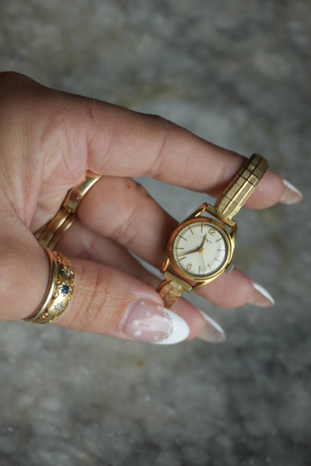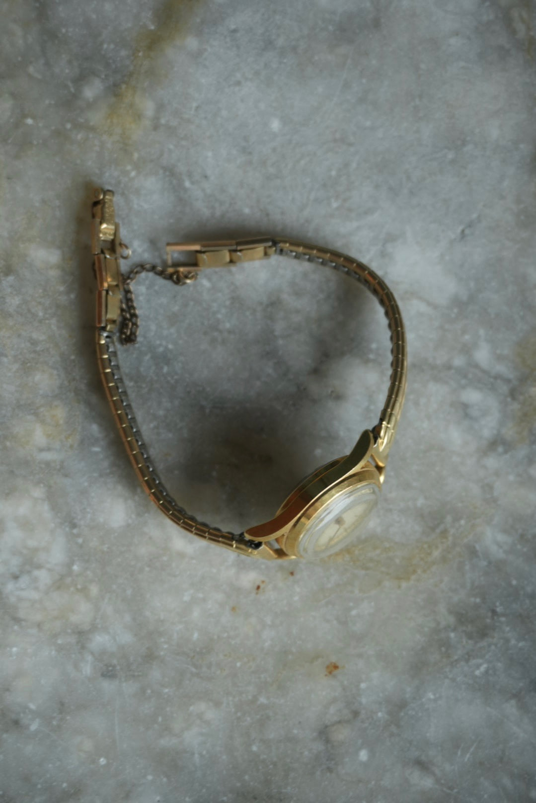 Gold fill vintage stretchband watch that does work! Manual wind up. 6” length