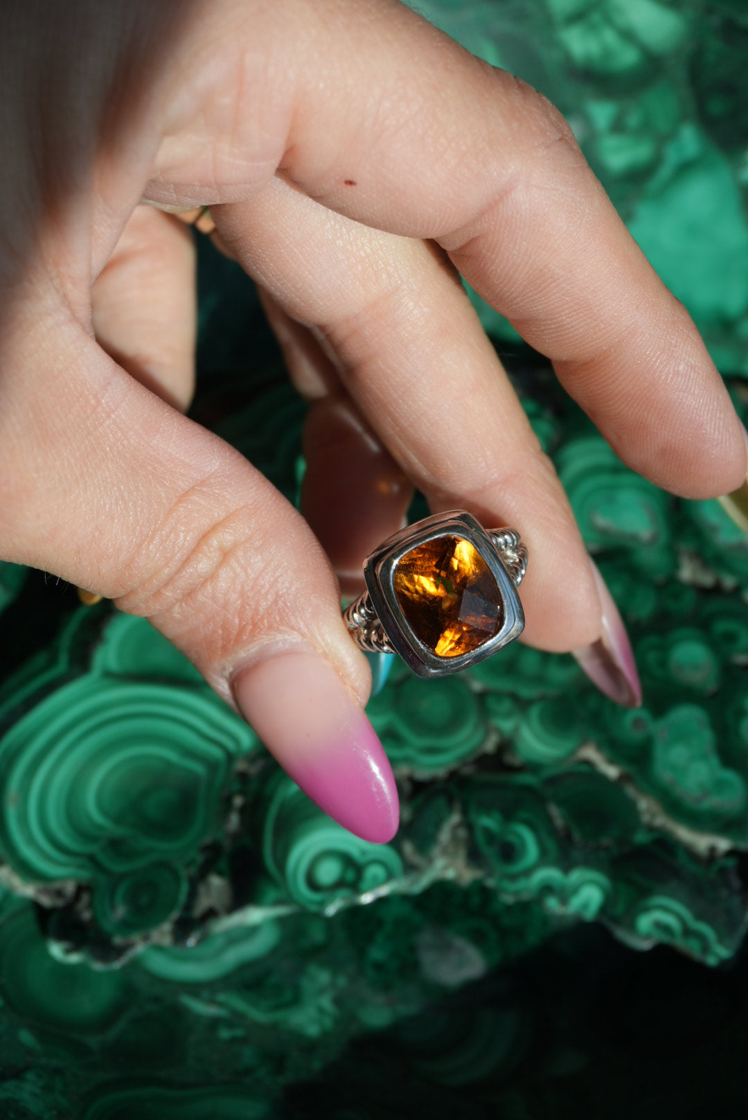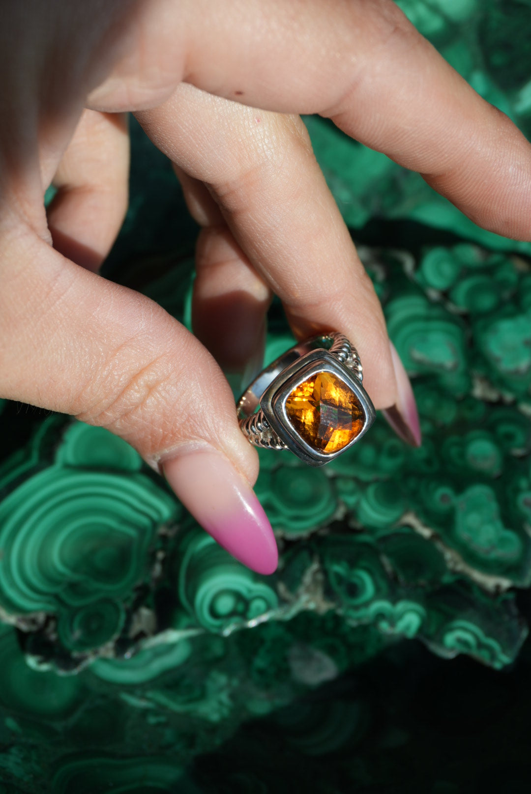 Size 6.5 sterling silver ring with a cushion cute citrine