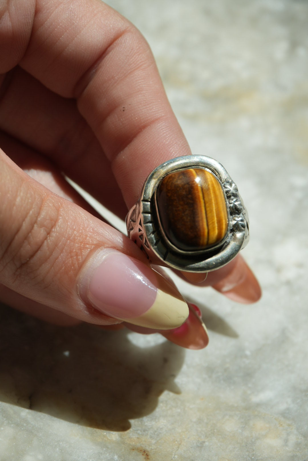 Size 12.5 sterling silver from mexico wide band with large tigers eye stone