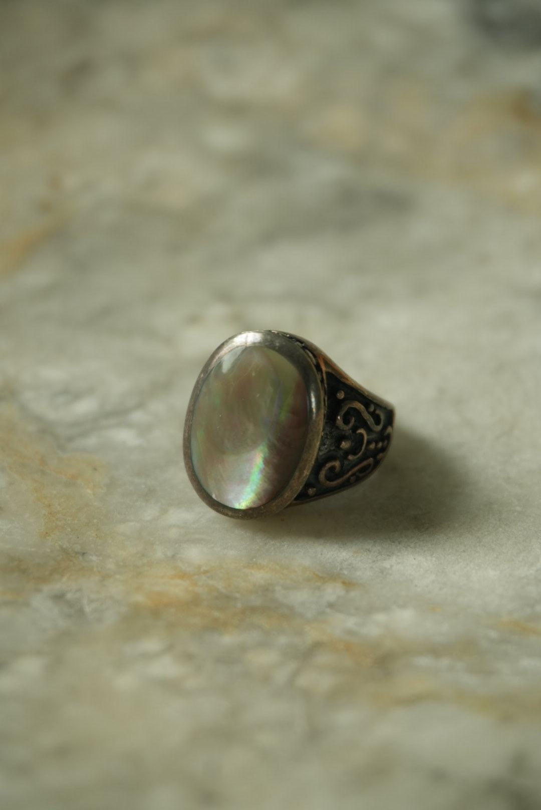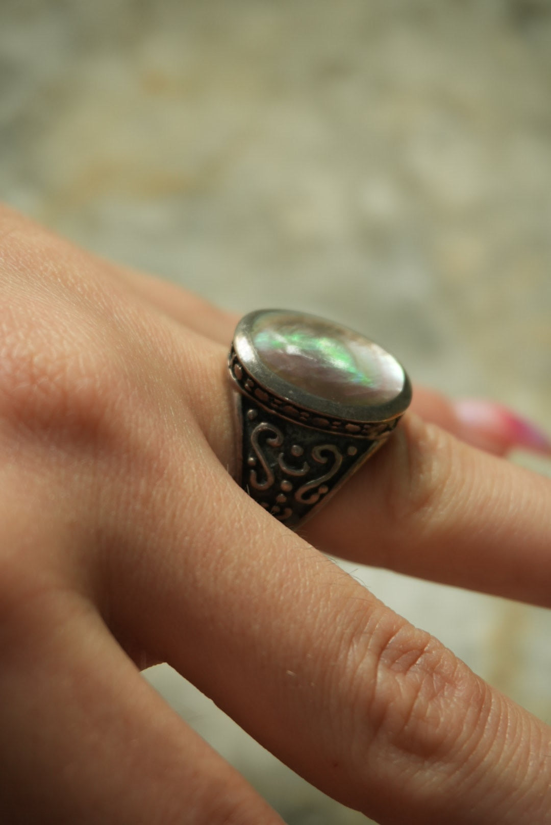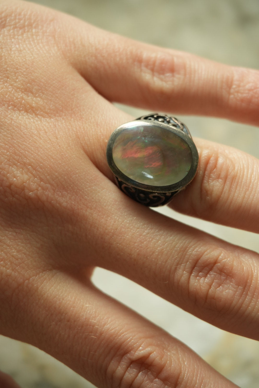 stunning sterling silver band with large oval abalone size 6