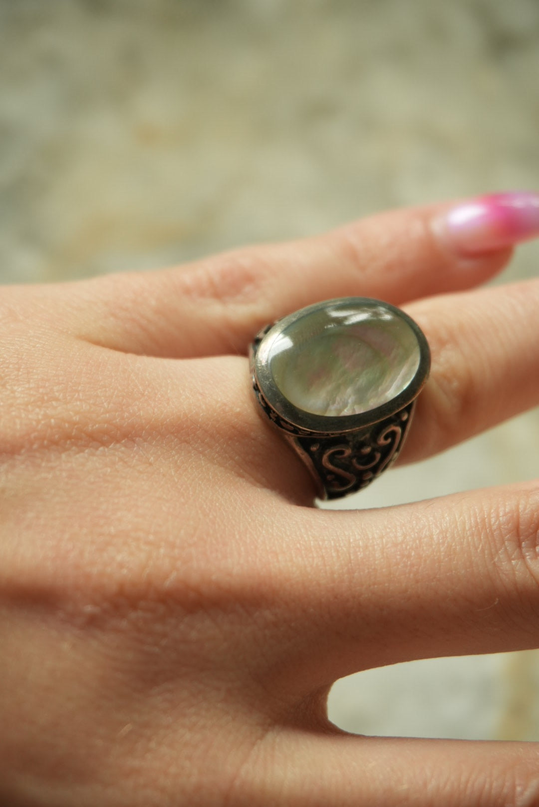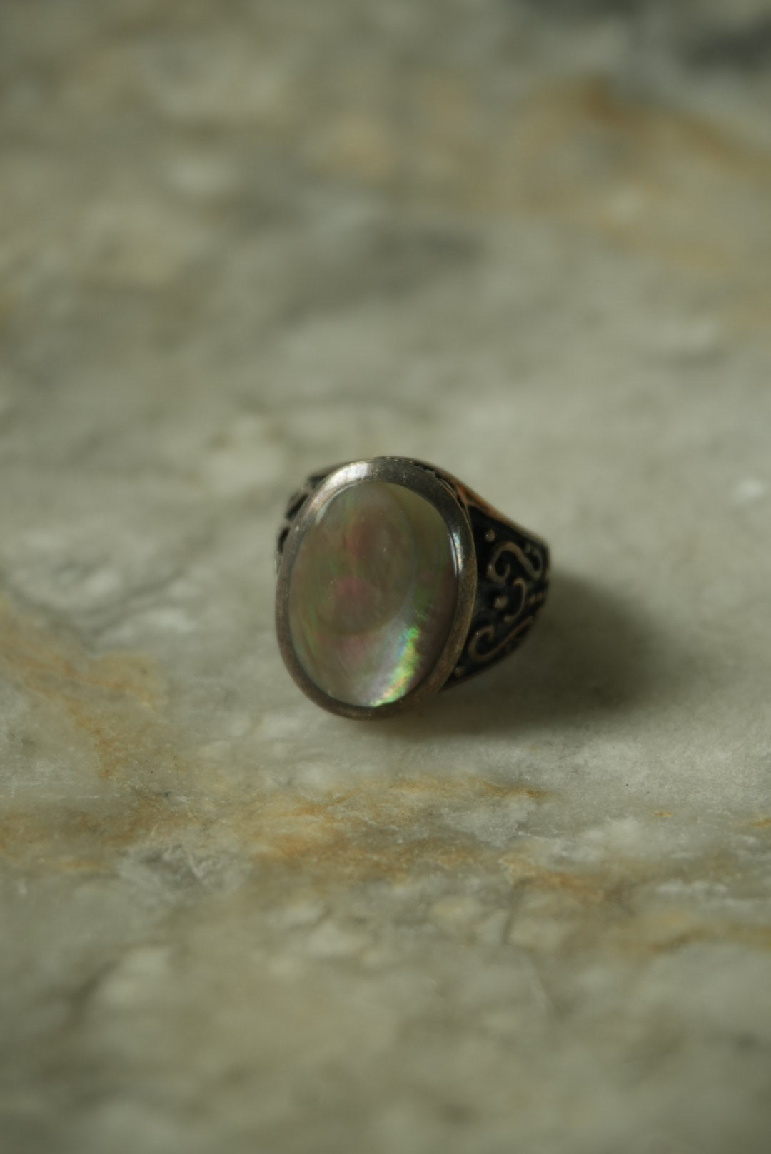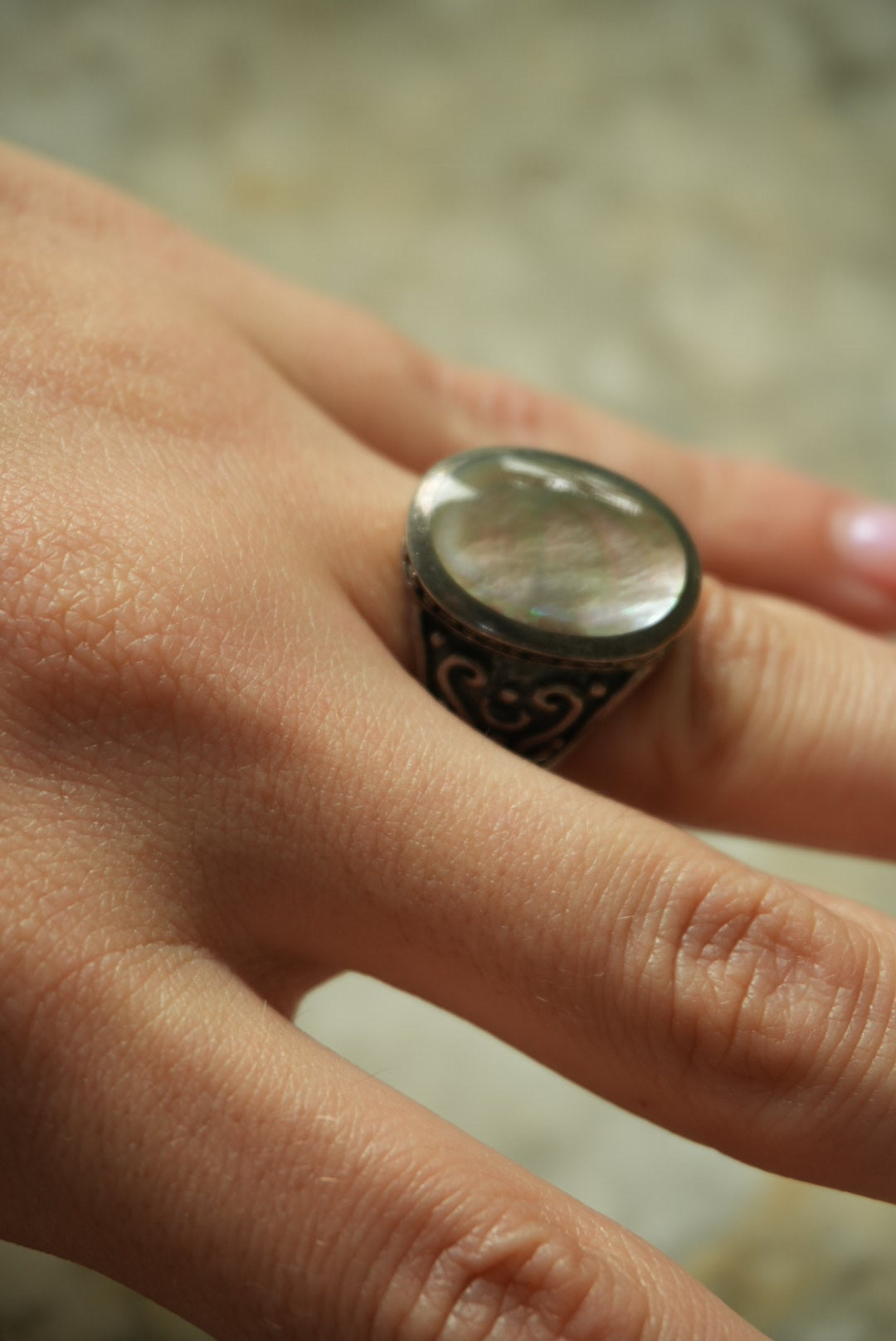 stunning sterling silver band with large oval abalone size 6